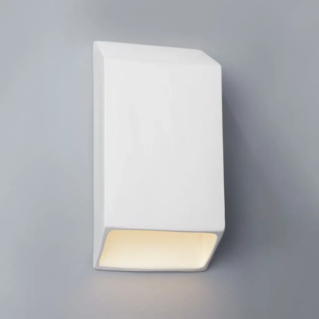 A smart architectural touch perfect for lending a sophisticated look to any wall. The Justice Design Group Ambiance Tapered Rectangle Closed Top LED Wall Sconce is crafted by hand using top of the line Ceramics, then hand painted to create a striking visual effect that is ideally suited for each and every space. This fixture uses a simple downlight design in LED with a tapered rectangle motif that directs light where you need it (and not where you don’t). It’s a wonderful way to create dramatic lighting and atmosphere in bath areas, especially around centerpiece tubs, and along hallways. It offers an understated lighting solution that can’t be beat.