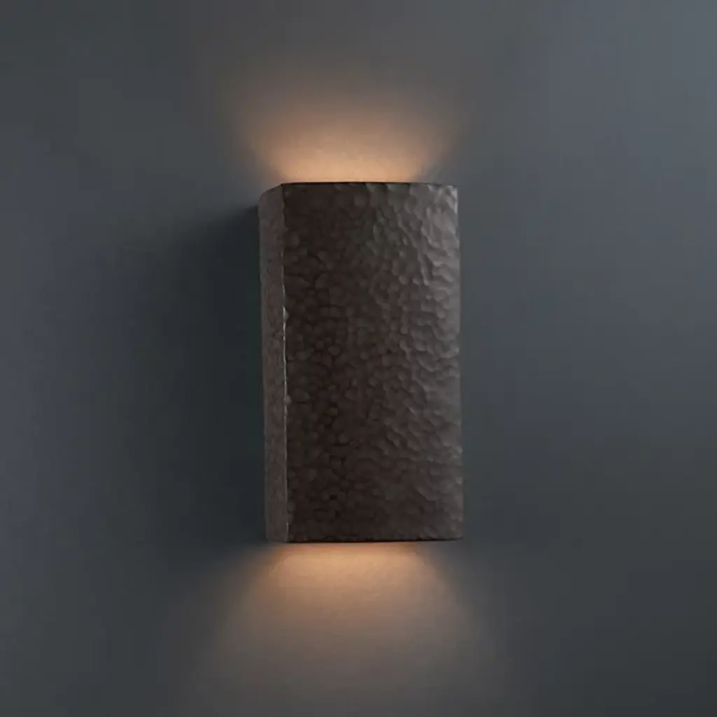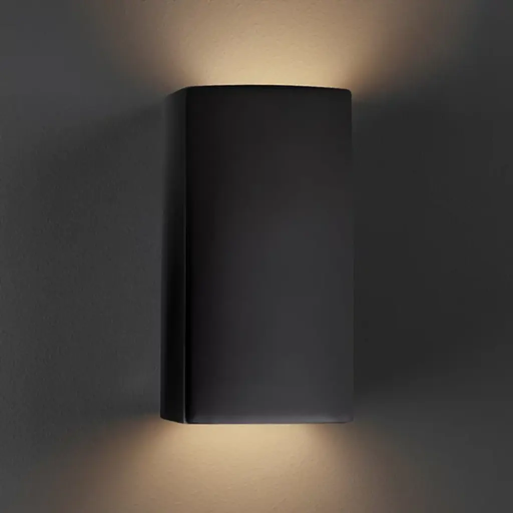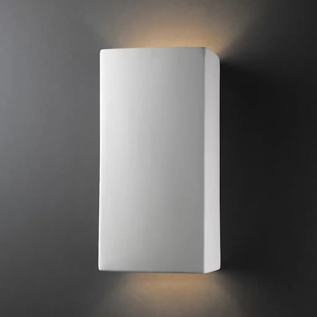 Take a thoughtful approach to styling the interior of your home with the Justice Design Group Ambiance Up and Downlight ADA Rectangle Wall Sconce. This eye-catching interior wall light is built with a strong ceramic frame and features a thick, rectangular-shaped design. This hanging wall light is damp location rated and features an open top and bottom design. Use this stylish, modern wall sconce fixture to add depth and warm, refreshing light to the interior of your home.