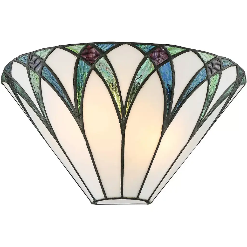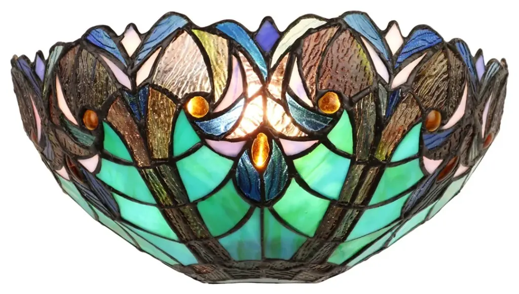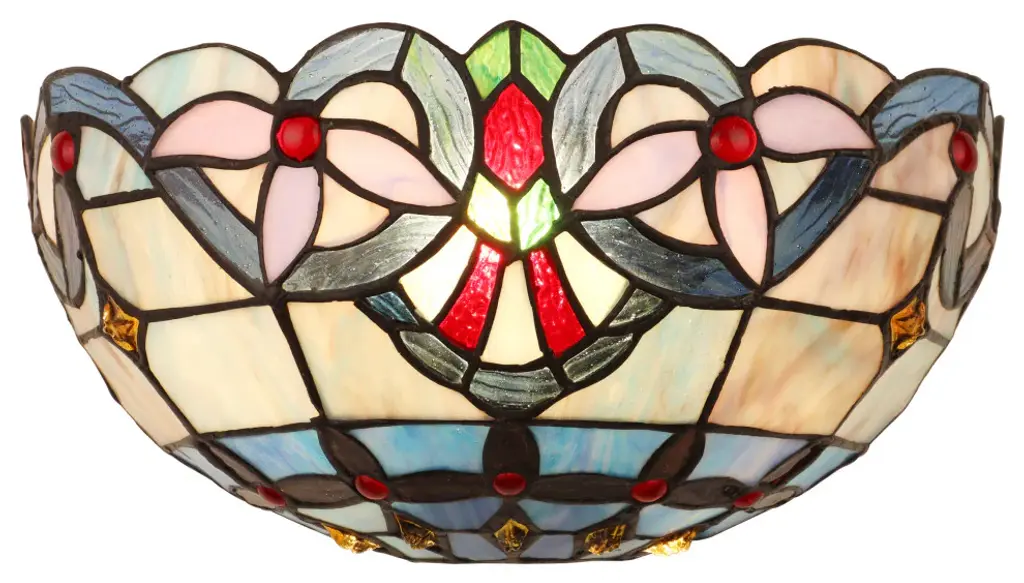 AMBROSE, a Victorian style wall mount sconce features distinctive geometric shapes contrasted by vertical rows of gem-like cabochons. Handcrafted with quality materials.(1) 60 Watt max E26 Type A Bulb (not included)Hardwired107 pcs glass cutUplightIndoor SettingHarmonized code: 940540Since these are hand crafted products, the exact color of glass pieces may vary. Colors of the glass will appear darker and less vibrant when not illuminated. Handmade glass will vary from one piece to the other; glass made at different times will also vary. Light bulbs used in lamps or ambient lighting may affect the appearance of the products. Stained glass product has been protected with mineral oil as part of the finishing process. Please use a soft dry cloth to remove any excess oil.