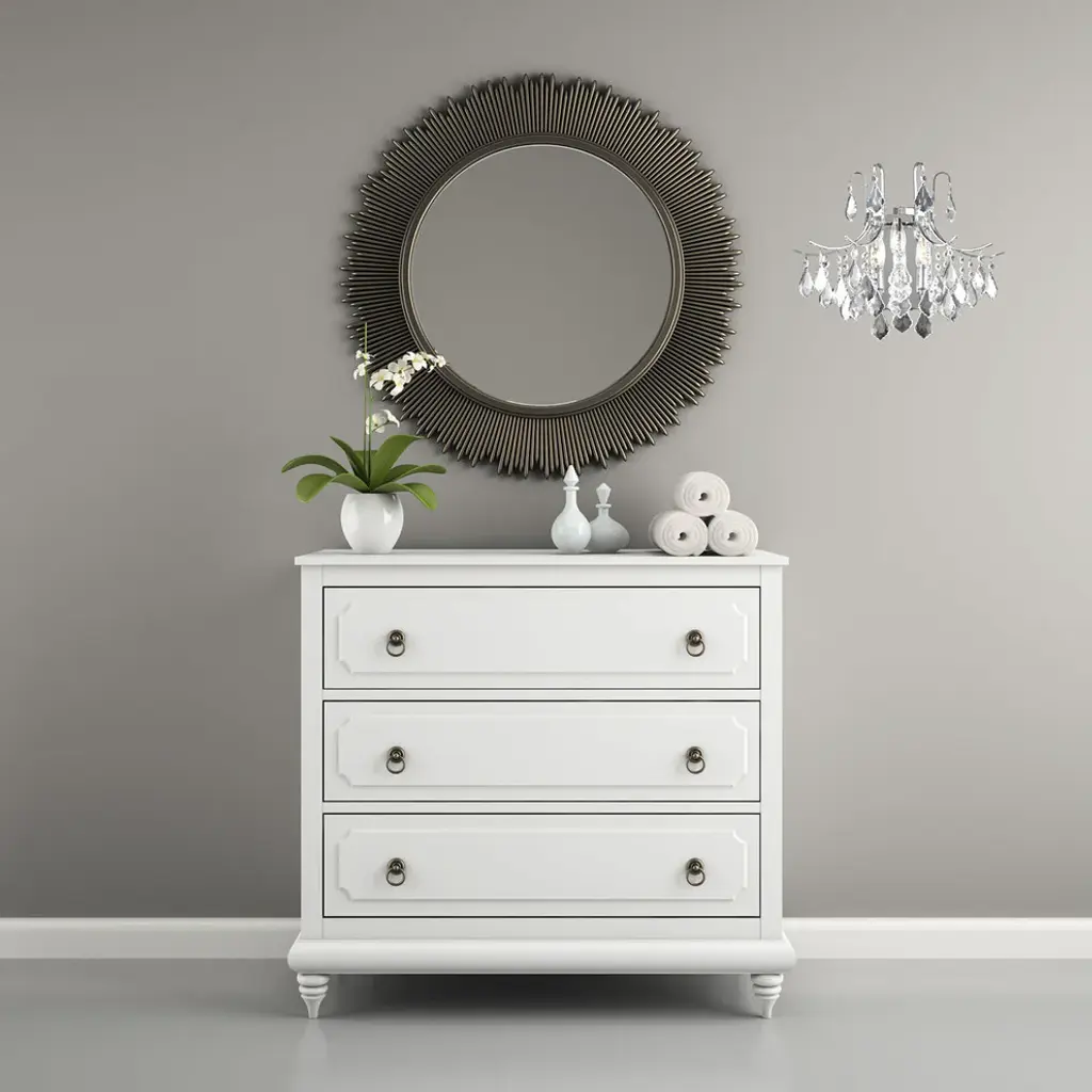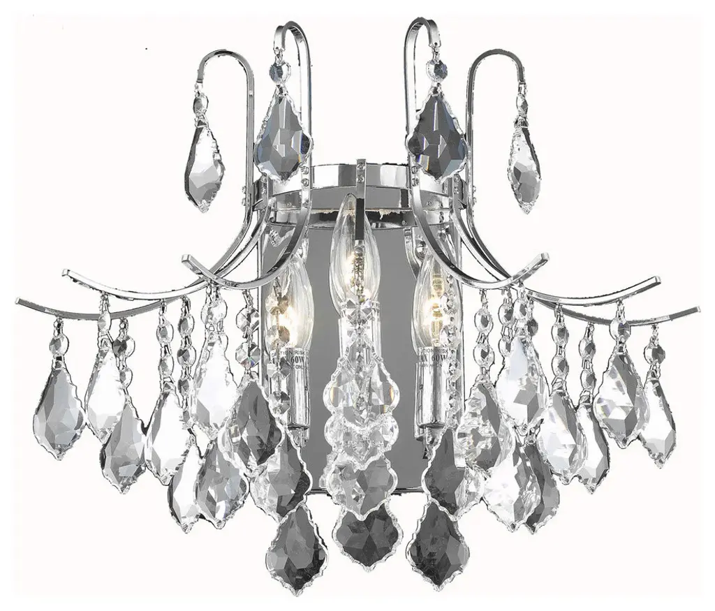 The Amelia collection sparkles with an extraordinary display of octagon crystals and faceted crystal pendalogues, creating the illusion of a shimmering cascade of ornamentation pouring from a sleek metal canopy. These fixtures would be a commanding visual presence in any room, and will fit comfortably in smaller spaces.The fixture features a bright chrome base with an array of squared metal armsIllumination comes from 3 candelabra bulbs (not included) The fixture is 16 inches in diameter and 14 inches in height