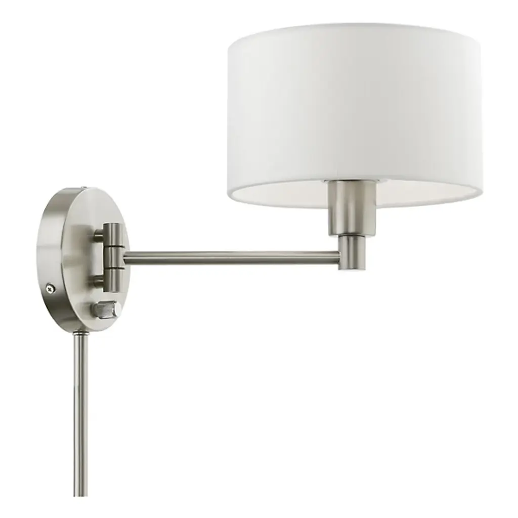 Add the Amelia Swing Arm Wall Sconce by Alder & Ore bedside or above a favorite reading chair to enjoy more light where you need it. The sconce’s metal framework is transitionally styled, while the fabric shade offers a subtle texture. The incandescent light that fills your room is nicely tempered by this shade’s cylindrical body.