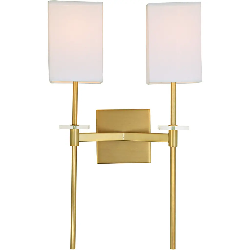 Amherst 2 Light 13 Inch Aged Brass Wall Sconce Wall Light, Crystal Bobeches