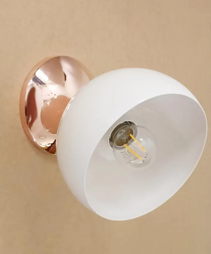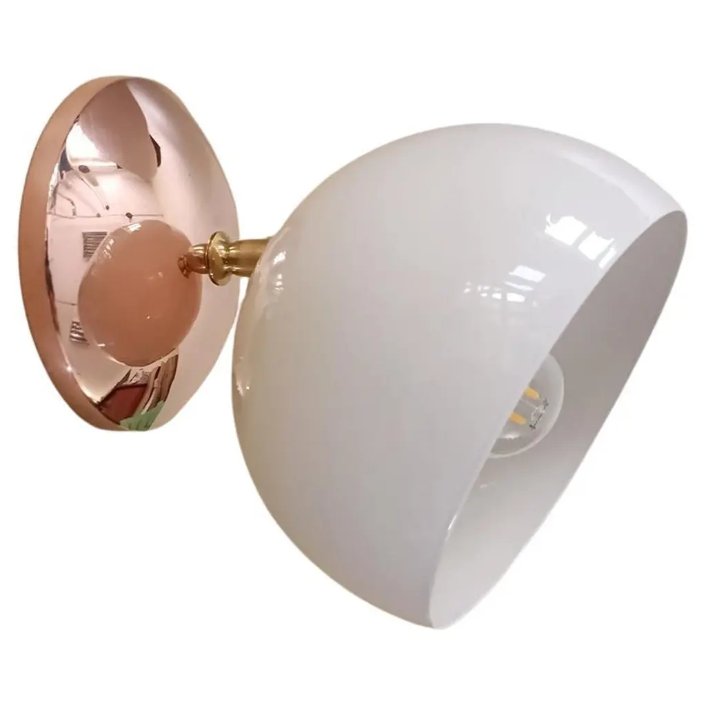 Amisto - solid copper, brass and steel shade in white cream.Pink(ish) copper and brass are polishes but not painted/ coated (coated on request). Lamping: 1 x E26/E27 We can make it also as plug-in version.Although default delivery time is 2-3 weeks, we may have stock (contact us for details).Any RAL color is available.Various brass finishes (aged brass, black bronze, burnished brass, satin brass).Express shipping worldwideThis piece was designed and produced by CANDAS DESIGN, a studio that we launched in 2019.We are constantly committed to deliver high quality, cutting-edge handcrafted products and focus on crafting lighting and objects that amplify the inherent beauty found in raw, elegant materials such as brass, copper, steel, porcelain and glass.From concept to creation, our in-house design team produces works with superb craftsmanship and unwavering commitment to the highest level of refinement and finish, making pieces that will impress and last.