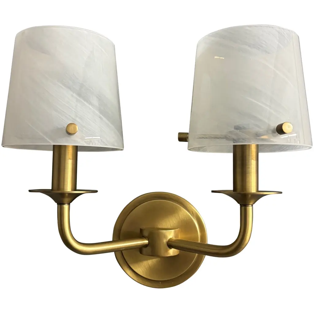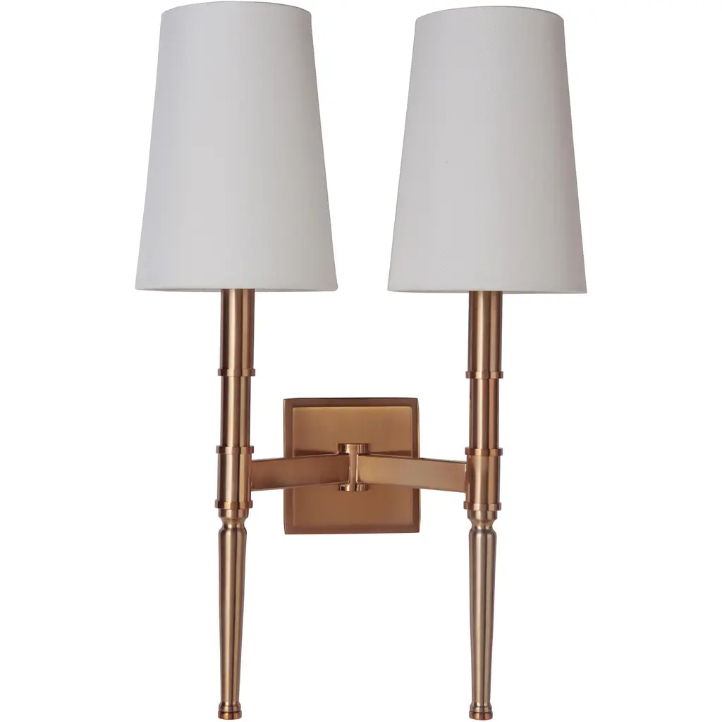 A striking combination of stunning materials and textures enlivens the rigorous silhouette of this elegant sconce designed by Ciarmoli Queda Studio. The brass structure comprises a central circle supporting two functional arms and a decorative one in the center. Covered in stingray shagreen in a warm brown color, these vertical elements will enrich a modern interior, thanks to their 60s-inspired design. The two, LED E14 light bulbs are covered with shades in pleated fabric.