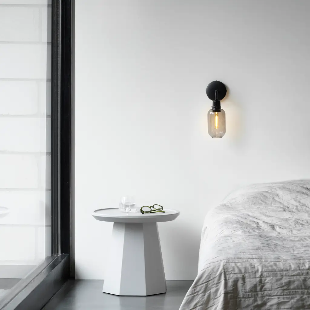 Inspired by old tube amplifiers from the 1960s, designer Simon Legald shapes a sophisticated wall lamp from a mix of luxe elements. Amp finds a glass shade slipped over a marble fitting, with a curved arm and wall plate in powder-coated metal. A decorative LED bulb emits a stunning dimmable glow filtered through the smoked or golden glass. Normann Copenhagen's light can be installed as a hardwired fixture or as a plug-in with the included power cord.