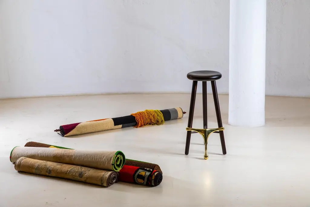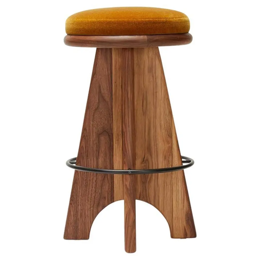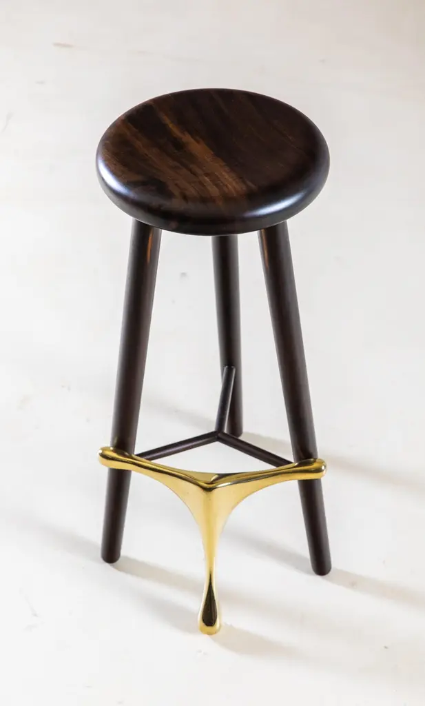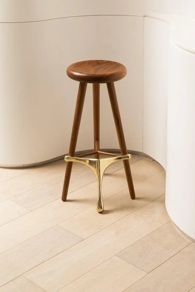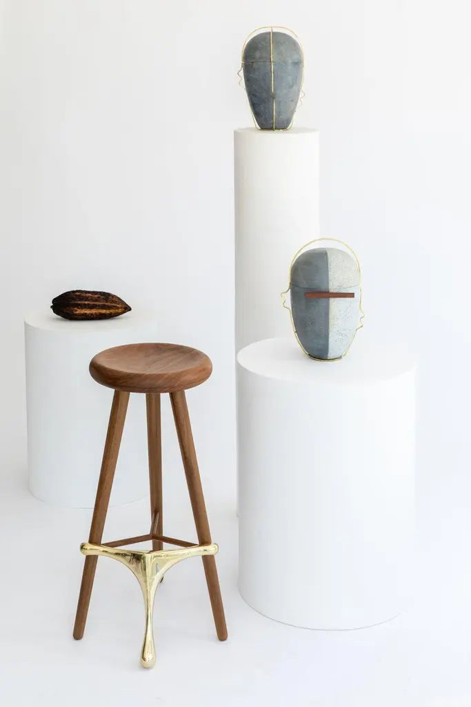 Amparo Freijó and Bronze Stool by Alva DesignMaterials: solid wood (Freijó) and cast bronze.Dimensions: W 37 x D 48 x H 63 cm.Available in different wood options (Braúna or Freijó solid wood) and footrest options (solid wood, iron or cast bronze). Also available in different heights (63 or 73 cm). Please contact us.One counter stool, one screen, one coffee table, two wall sconces, sculptures: furniture and objects that make up a Decollection (Descoleção).Each piece was designed separately, expressing its uniqueness to the fullest, whether in use, concept, materiality or design.Such a proposition is a provocation in the face of concepts such as linearity, repetition and construction of narratives that usually guide our product development.Alva is a furniture and objects design office, formed by brothers Susana Bastos, artist and designer, and Marcelo Alvarenga, architect. Their projects are the result of the meeting of these two visions, the architectural and the artistic, and beyond the usual rationality and functionality, they seek the unusual, new uses and an expressive materiality. The duo's creation process starts from a sensitive observation of people's daily lives, their habits and current needs, together with a perception of new potentialities to be artistically explored. In the development of each piece, the technical and aesthetic baggage of the brothers, acquired through important experiences in the architecture and fashion market, is added to a strong relationship with their Minas Gerais and Brazilian origins. In the execution phase, the selection of raw materials and the exquisite manufacturing, often handcrafted, give a unique aspect to the works. The result is contemporary pieces loaded with memory.Alva's first line of furniture and objects was launched in 2013 at the MADE (Mercado, Arte, Design) fair in São Paulo. Following this launch, the firm partnered with Etel - a brand now known worldwide for publishing the best of Brazilian design - to produce and market some of its creations, bringing the brothers' names into the special group of authorial designers represented by it. Since their first release, Susana and Marcelo's creations have gained visibility in several important publications, websites and magazines, both national and international.