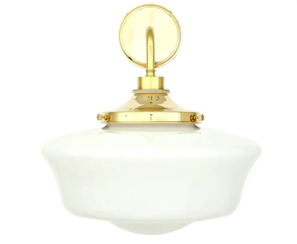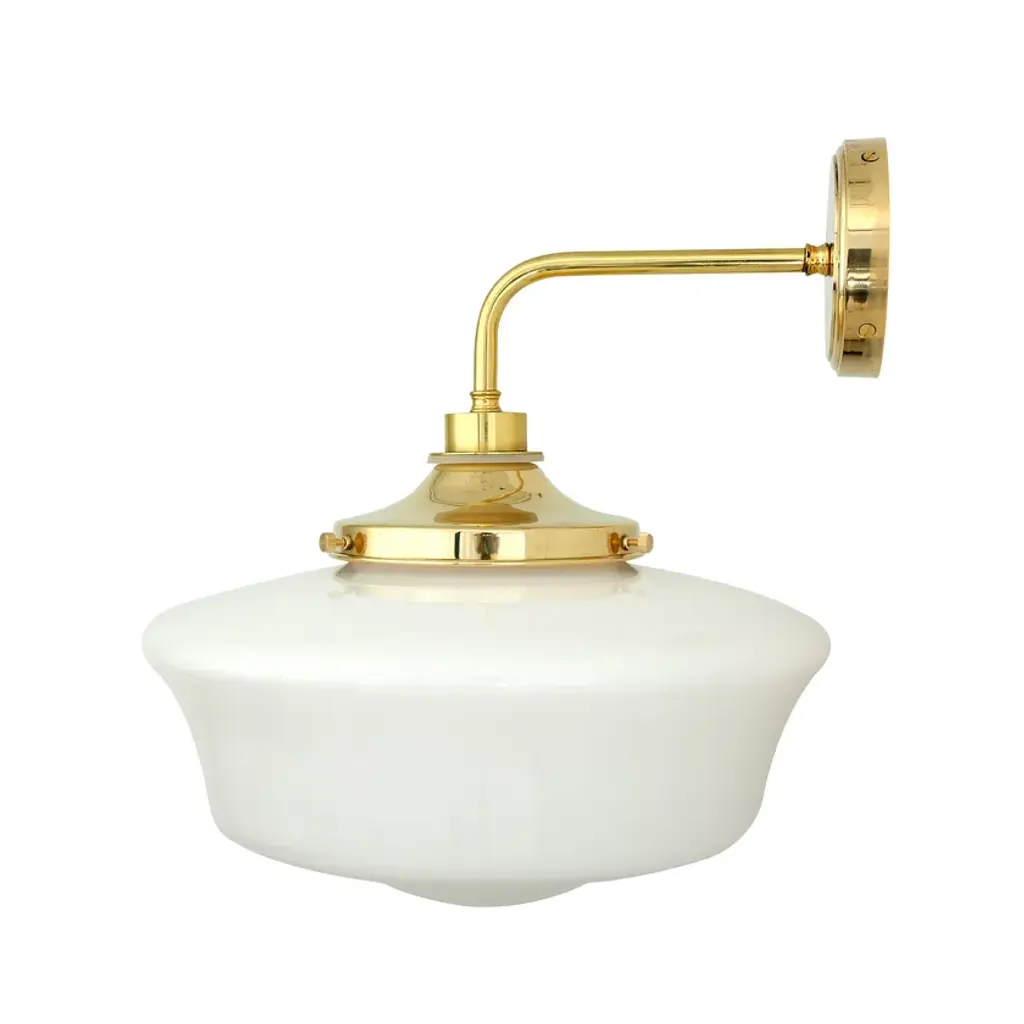 Anath wall light Material Brass | Steel | GlassProjection 37.5cm | 14.75”Weight 2.660kgMax Wattage 6.5w LEDVoltage 220/240vLampholder E27 | Plastic | ES | Edison ScrewIP Rating IP44Wall Attachment MLWB09Glass Code GL041AProtection Class Class II