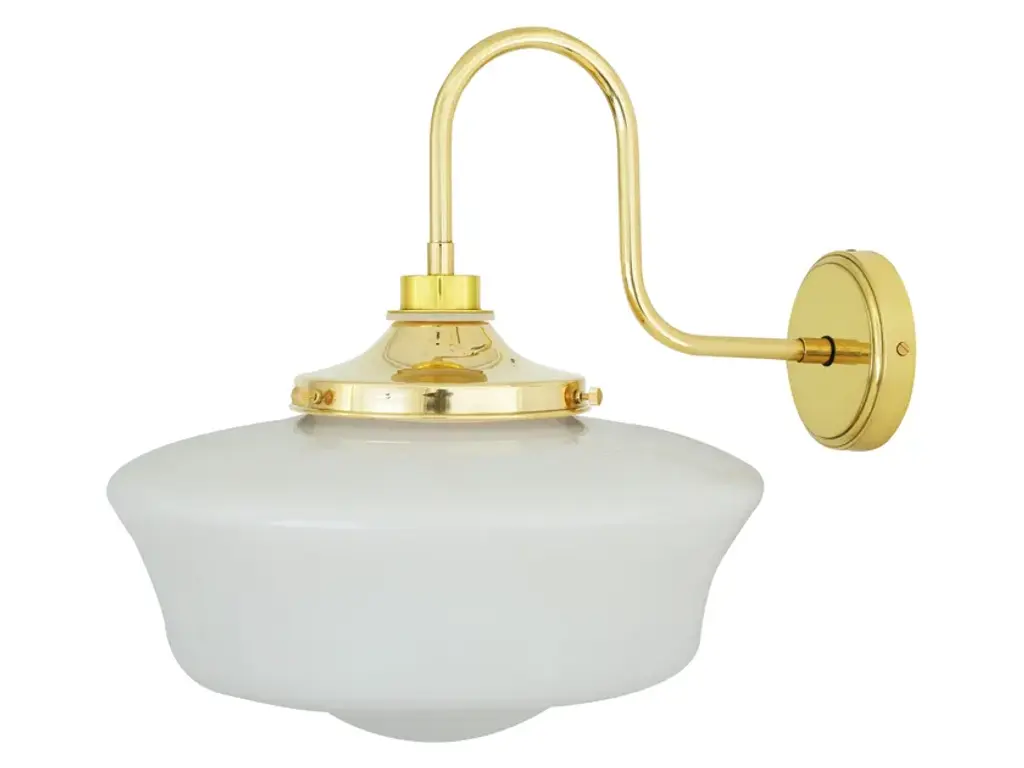 Anath swan neck wall light Material Brass | Steel | GlassProjection 44.5cm | 17.50”Weight 2.720kgMax Wattage 6.5w LEDVoltage 220/240vLampholder E27 | Plastic | ES | Edison ScrewIP Rating IP44Glass Code GL041AProtection Class Class II