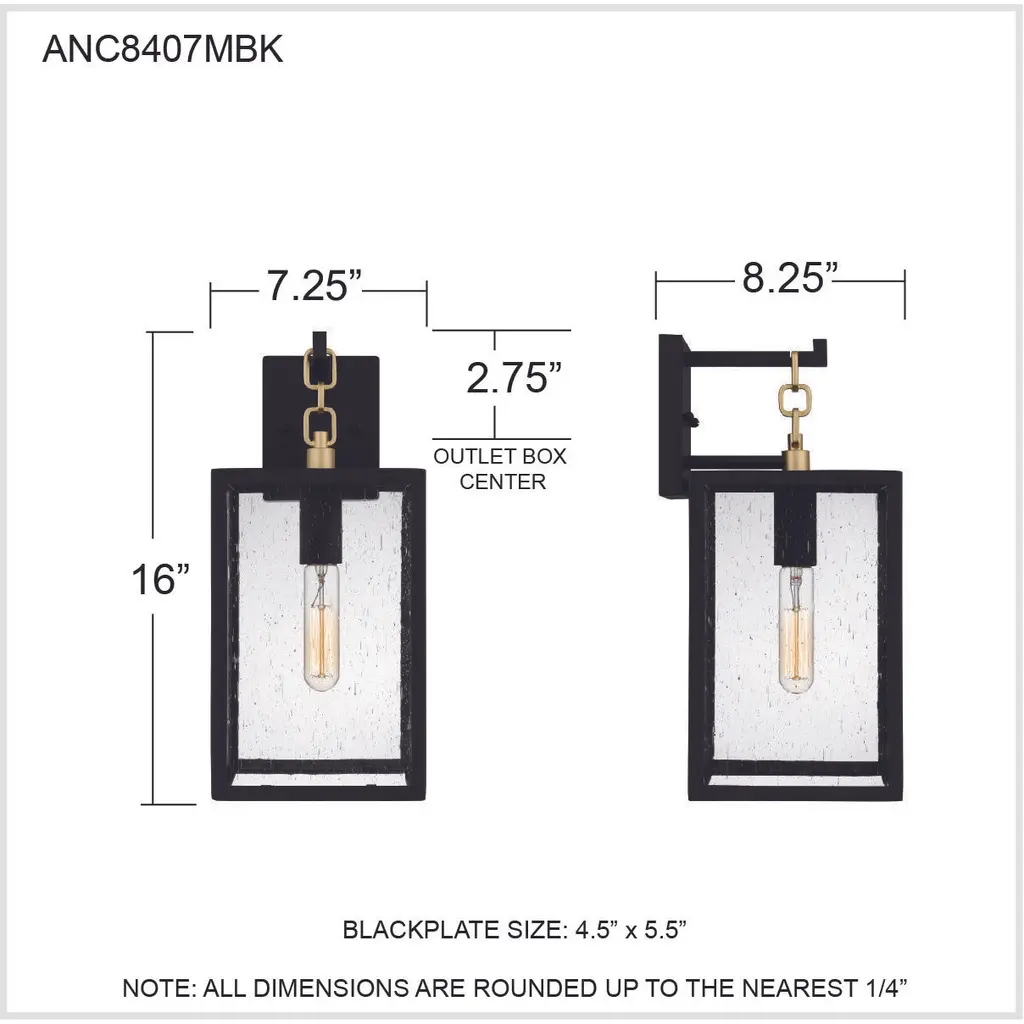 Anchorage 1 Light 16 Inch Matte Black Outdoor Wall Lantern