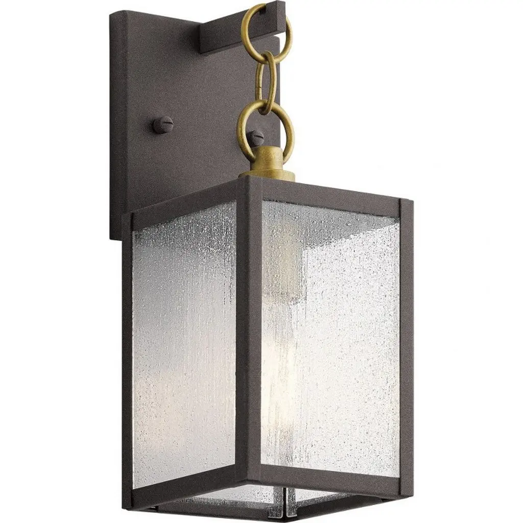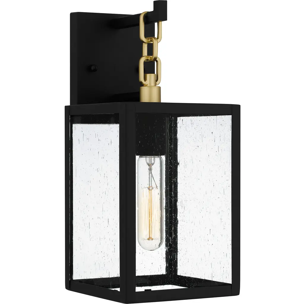 Inspired by jewelry, simplified lines and mixed metals give Anchorage wall lanterns an elegant feel. A sleek matte black frame pairs with clear seedy glass panels for a beautiful contrast, while a gold chain detail adds a hint of modern shine. Flank your front door with a pair of Anchorage sconces - or light up your porch or backyard to create the perfect setting for outdoor entertainment. As part of our Coastal Armour collection, this product is durable, marine grade, and comes with a warranty.