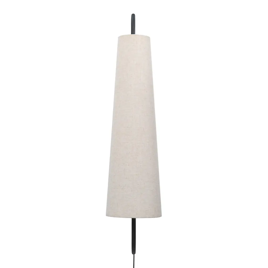 The Ancora Wall Lamp derives its name from the Italian word for ‘anchor’, drawing inspiration from its distinctive shape. The warm and textured textile lampshade beautifully contrasts its powder-coated iron frame, resulting in a poetic and vintage-inspired expression. This design effortlessly balances lightness and materiality, creating an enchanting ambiance in any space. Bulb not included.