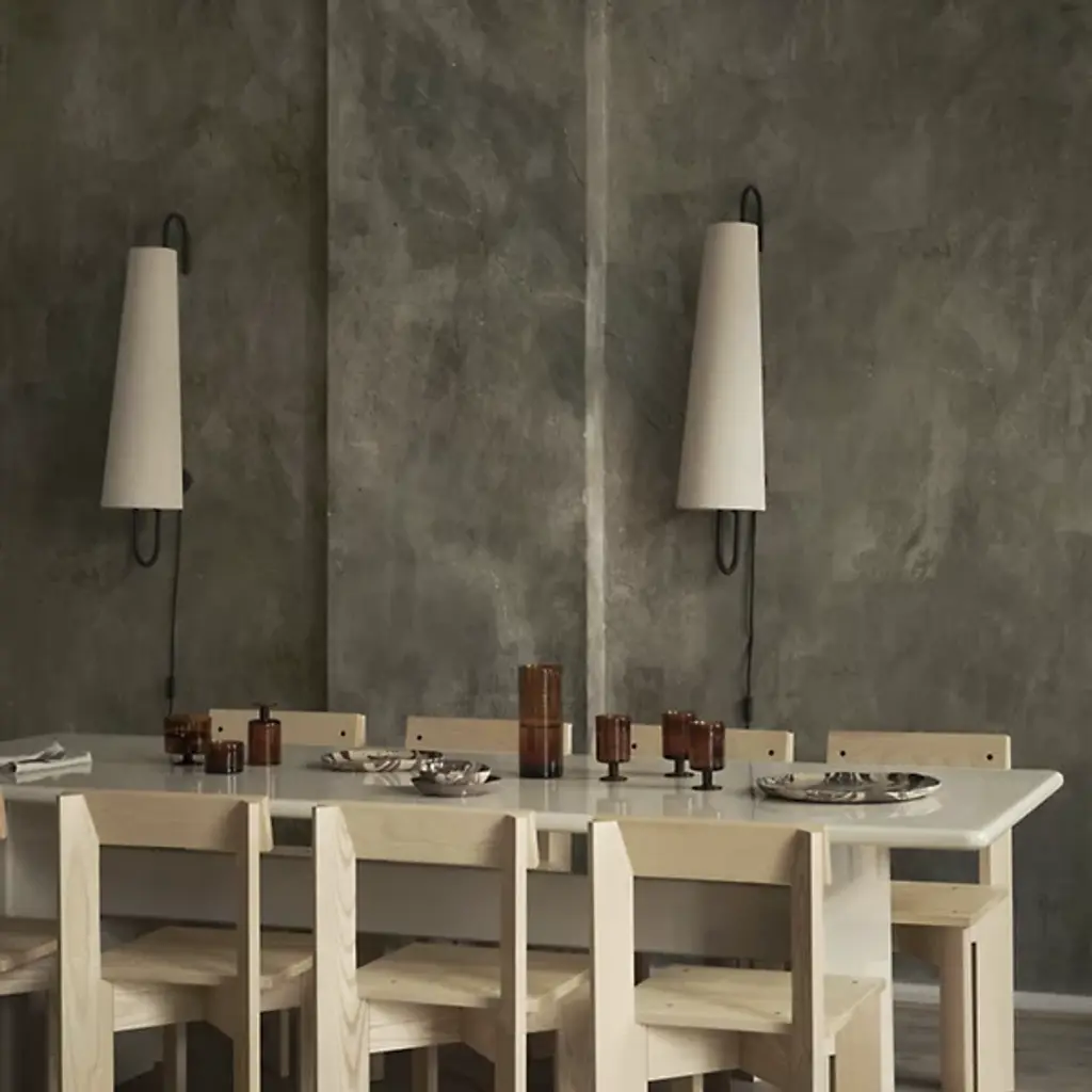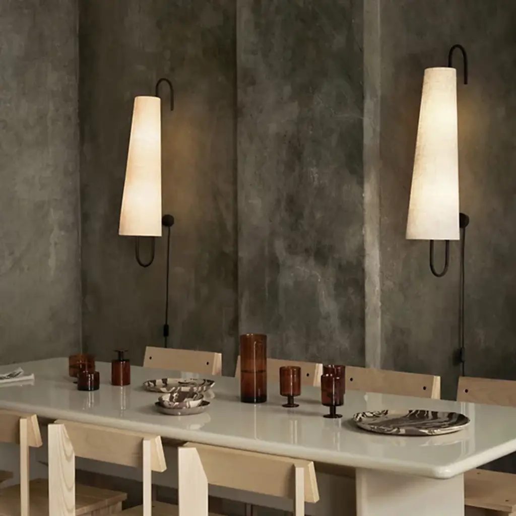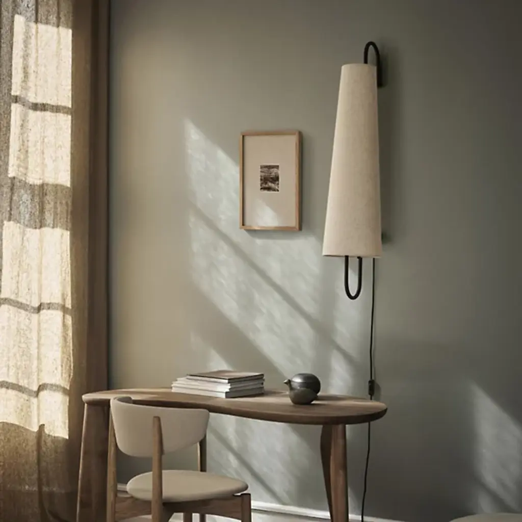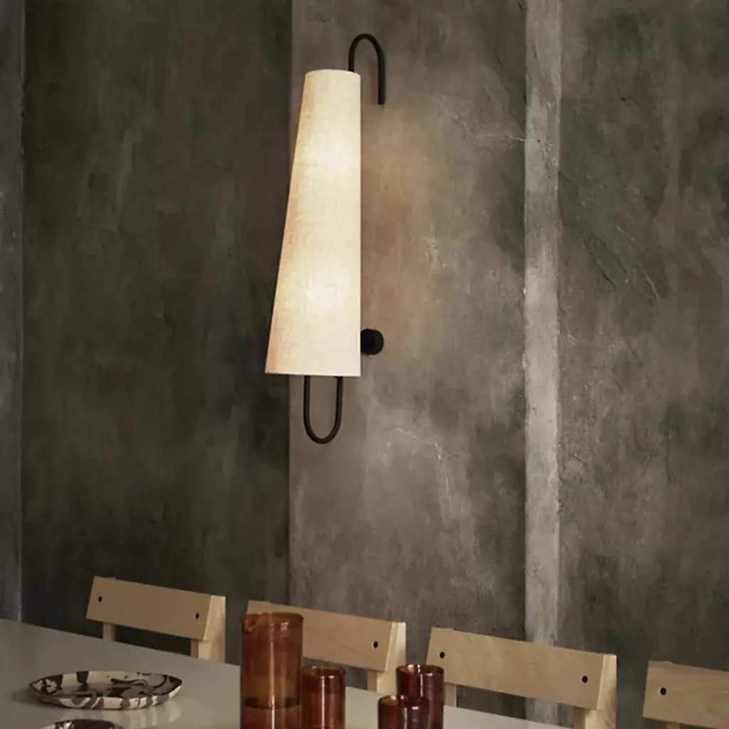 The Ancora Wall Sconce from ferm LIVING is a visual marvel that complements mid-century modern and contemporary settings alike. It features an iron framework that has a cane-like arc at the top. This wall sconce is accentuated by a linen and polyester shade that tapers as it ascends. The wall sconce is versatile and well-suited for placement near a workspace or paired with a second sconce of the same design to illuminate dining areas with LED light.