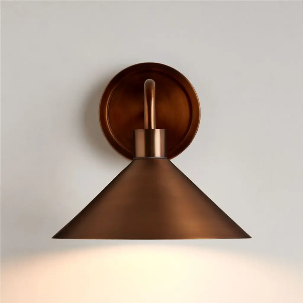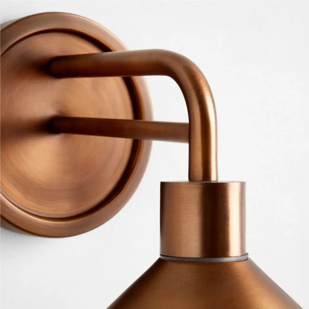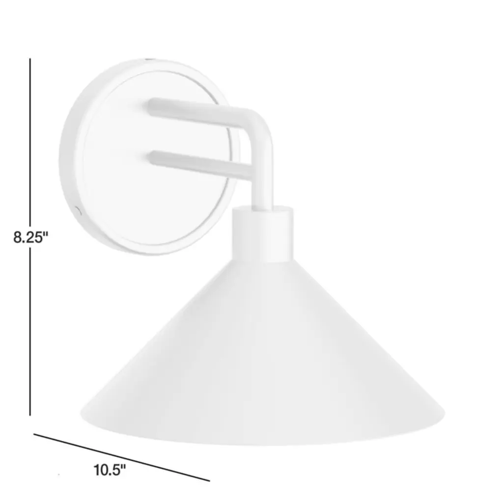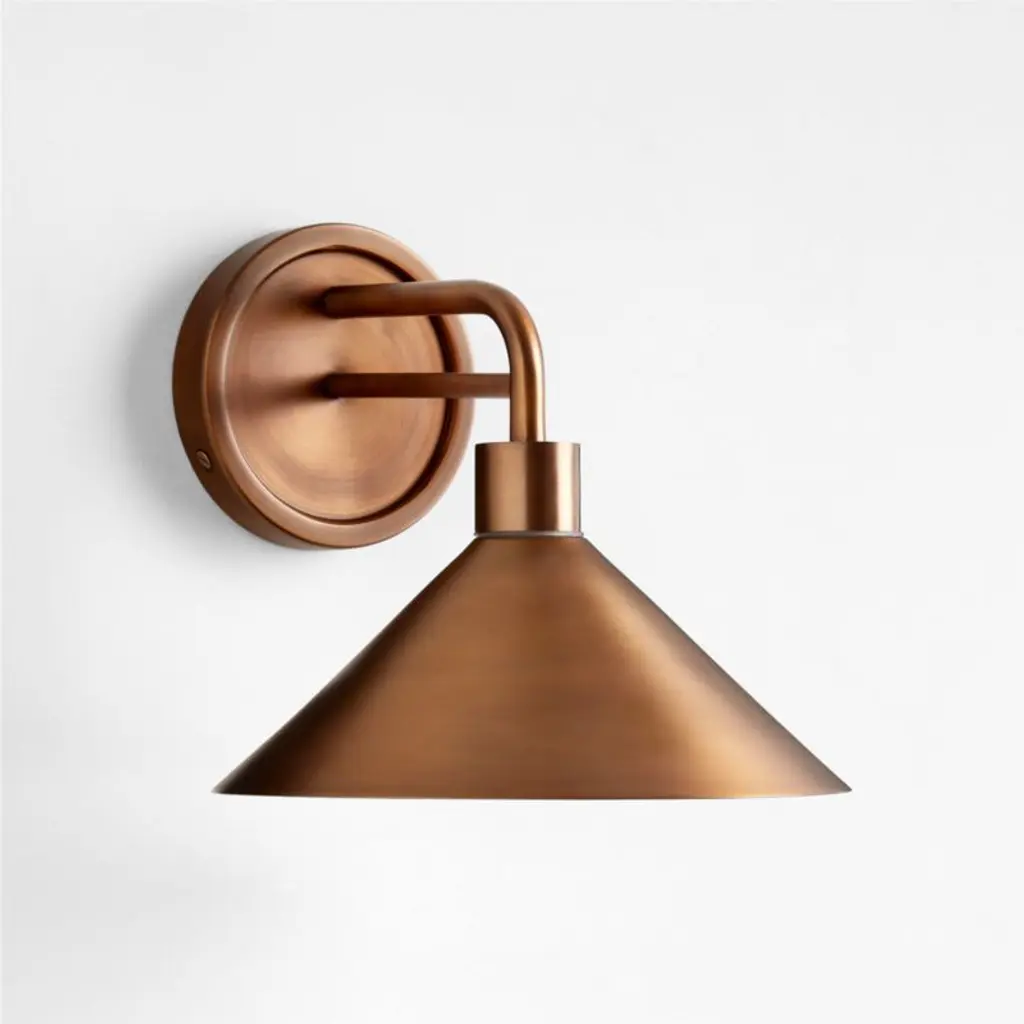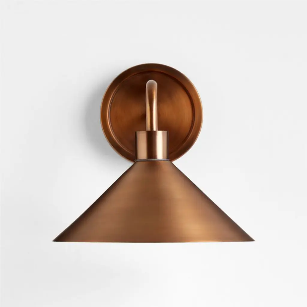 Graceful in brushed brass-finished steel, our versatile indoor/outdoor Andre sconce adorns your home like a piece of modern, minimalist jewelry. Slender, parallel tubes curve to support a conical shade that washes walls with light. Hung on a front porch, over a kitchen sink or lining a hallway, the gleaming wall light offers an illuminating mix of task and ambient lighting.