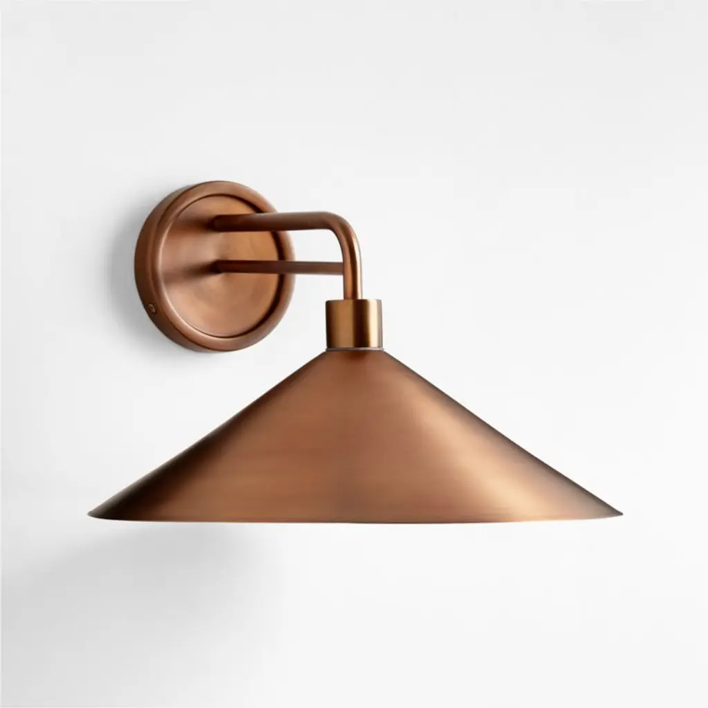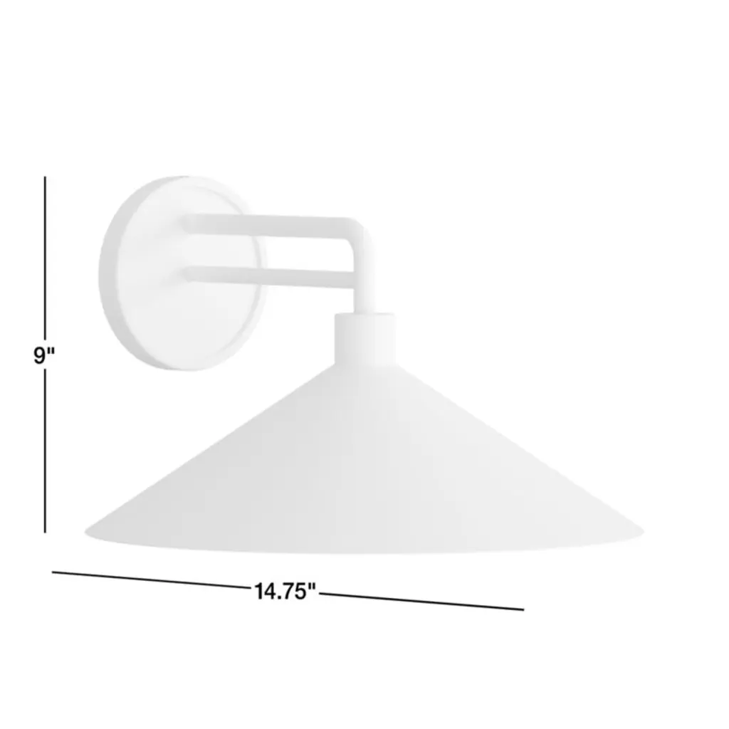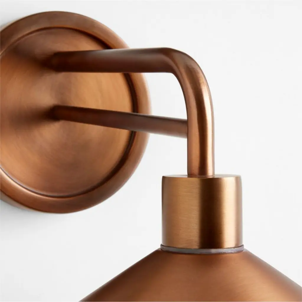 Graceful in brushed brass-finished steel, our versatile indoor/outdoor Andre sconce adorns your home like a piece of modern, minimalist jewelry. Slender, parallel tubes curve to support a broad conical shade that washes walls with light. Hung on a front porch, over a kitchen sink or installed in multiples lining a hallway, the large wall light offers an illuminating mix of task and ambient lighting.