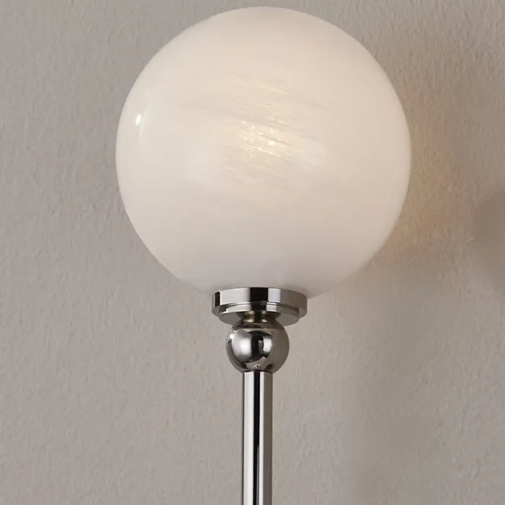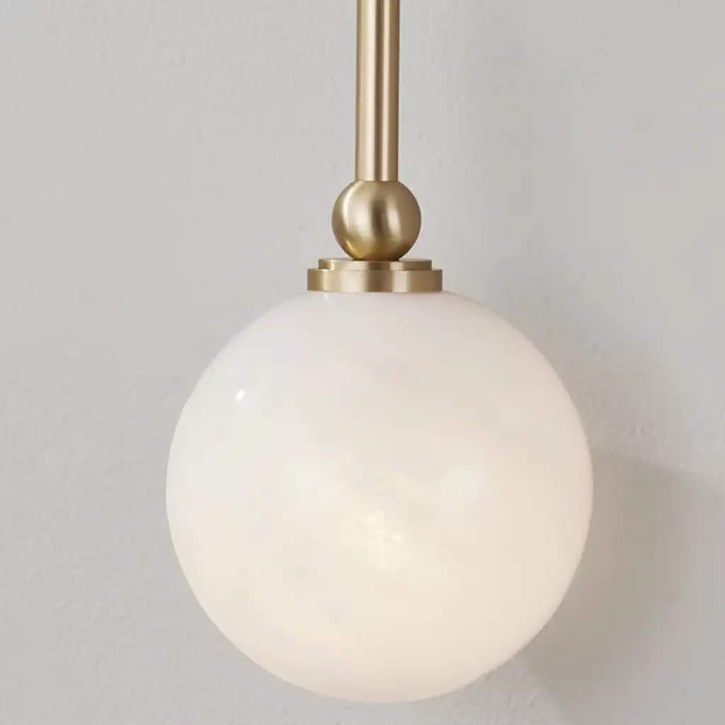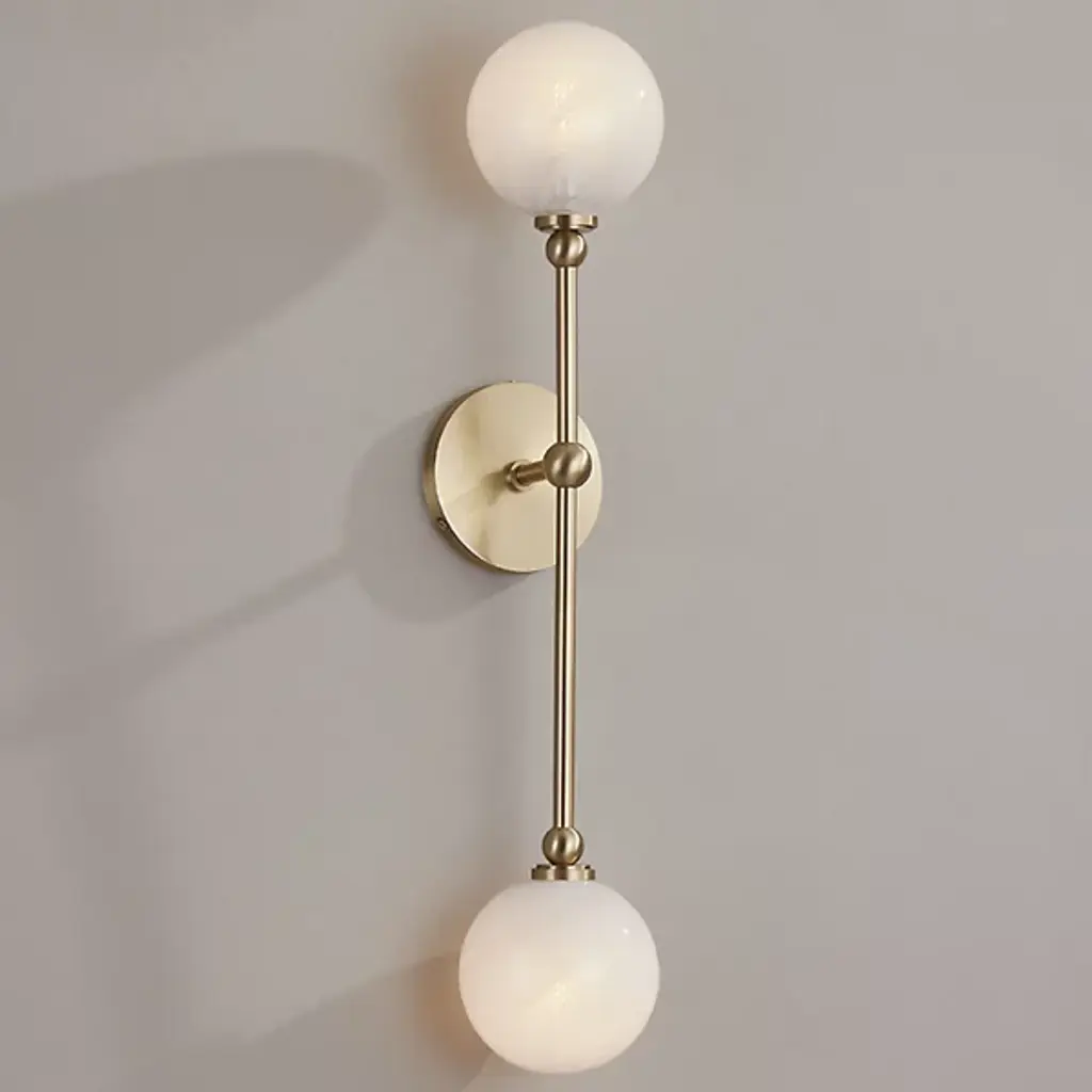 Add vintage flair to inside walls with the inspired, stately style of Andrews Wall Sconce from Hudson Valley Lighting. A steel disc wall mount extends a short rod to the sides, each end of the bar setting energy-friendly LED lamping beneath rounded globe shades. The cloudy inner texture of each globe obscures direct glare from the lamping, while rounded accents threaded onto the slender stem provide a final pop of inspired accent.