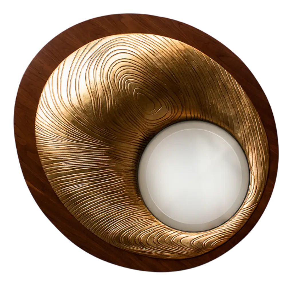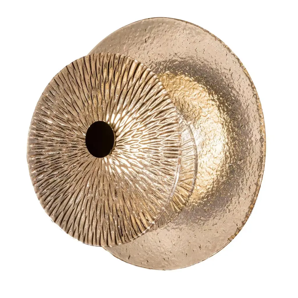 Unique and intriguing, this sconce is part of the Andromeda Collection designed by Massimiliano Raggi. Its elegant allure is obtained by the juxtapositions of two layers in mouth-blown glass in a tinted or bronzed finish. The structure is in champagne-finished metal. This superb addition to both a classic and modern home weights 7kg and holds one 3W LED bulb. The color temperature is 3000K with 400 lumens. This sconce is certified CE.