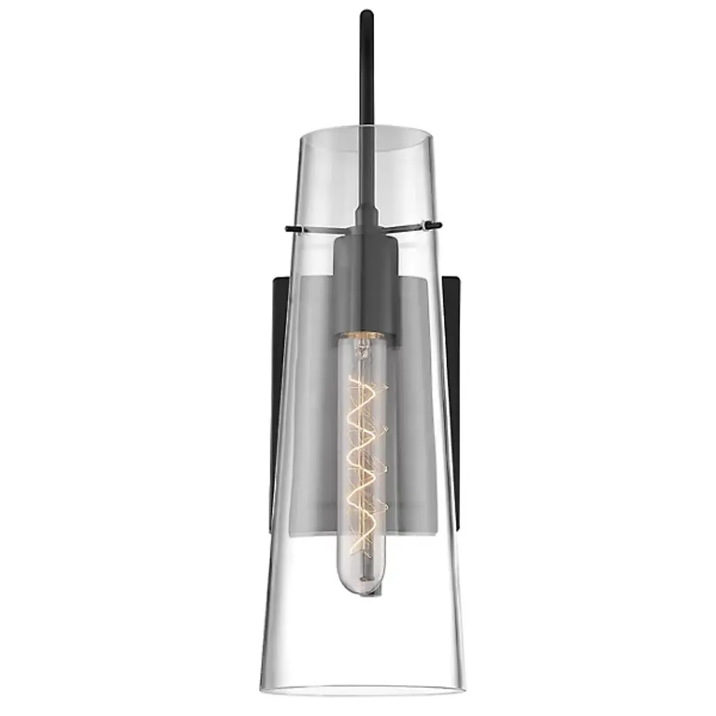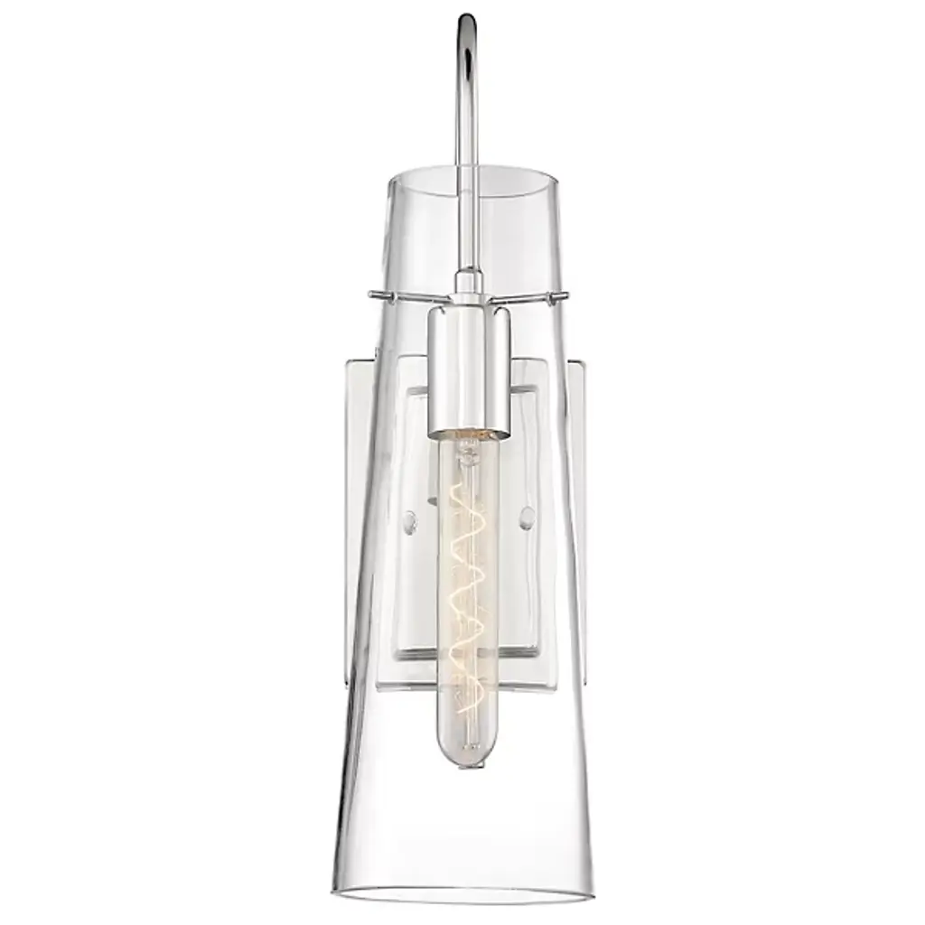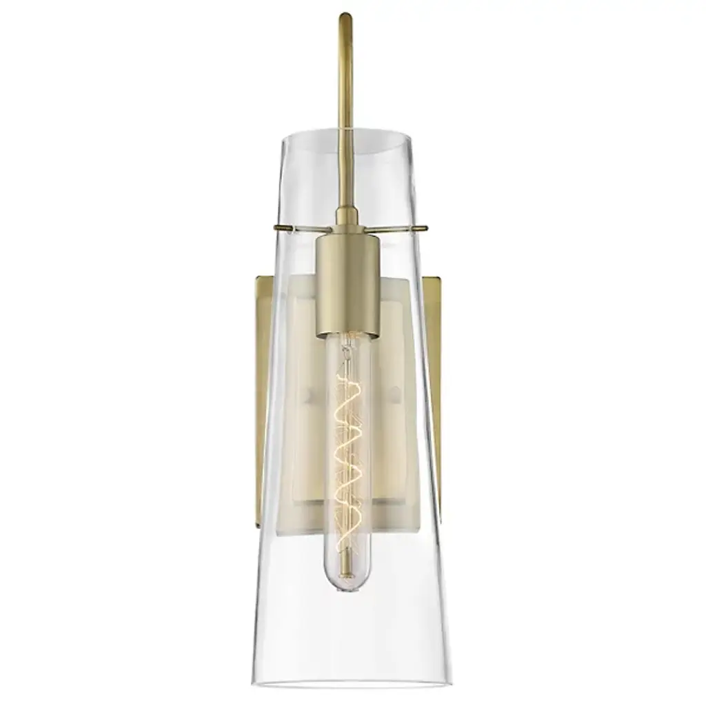 The perfect complement to the bathroom mirror. Get your daily routine started in front of the comfortable, light, and elegant design of the Anette Wall Sconce from Alder & Ore. The piece makes the most of its space as it mounts with a low-profile backplate. The eyes are treated to a charming curve created by the forward bent arm. Lifted with fine rods, a clear glass shade tapers at the top, creating a sophisticated display for the bulb inside. A vintage-style bulb gives an alluring quality to the ambient light as its filaments beam with a golden hue.