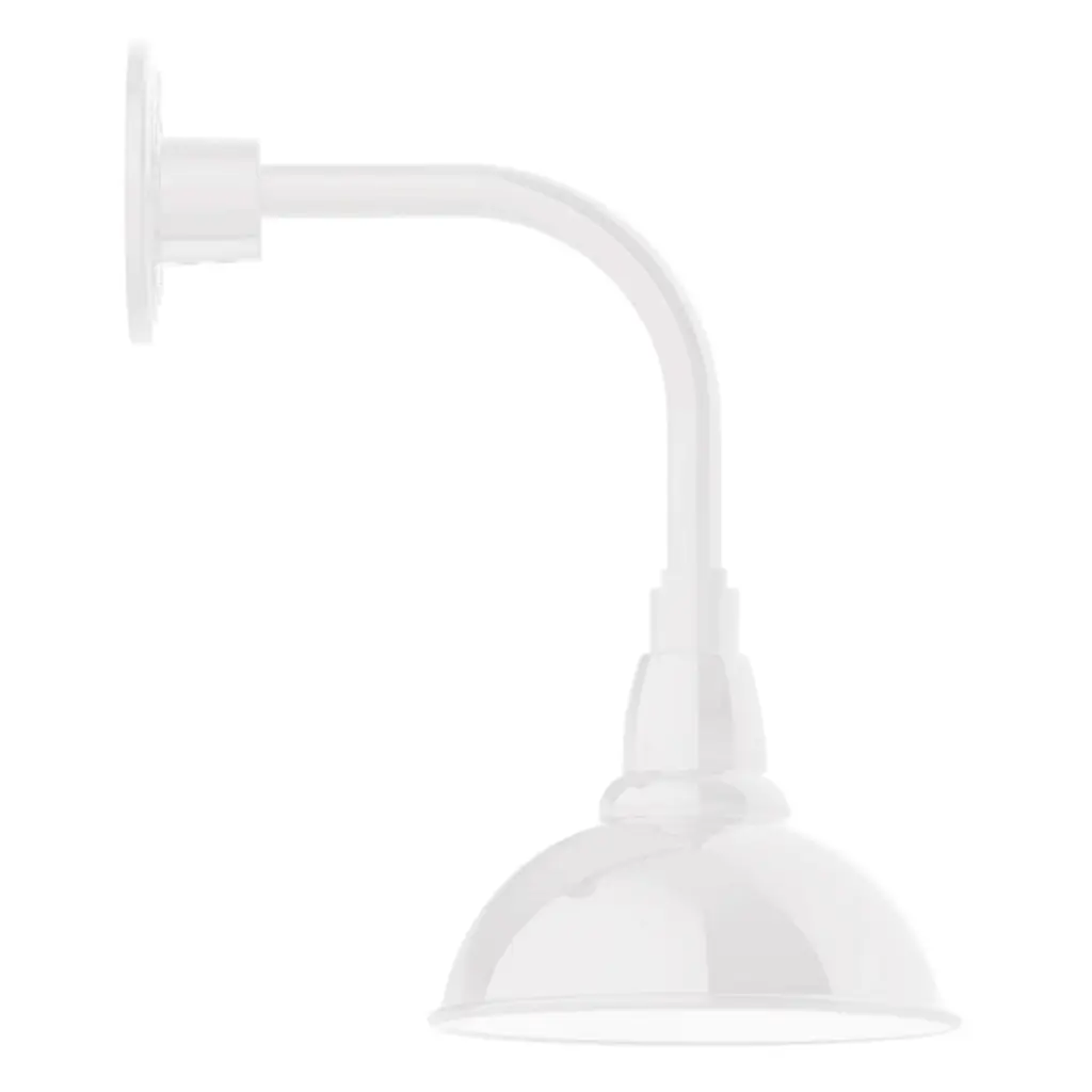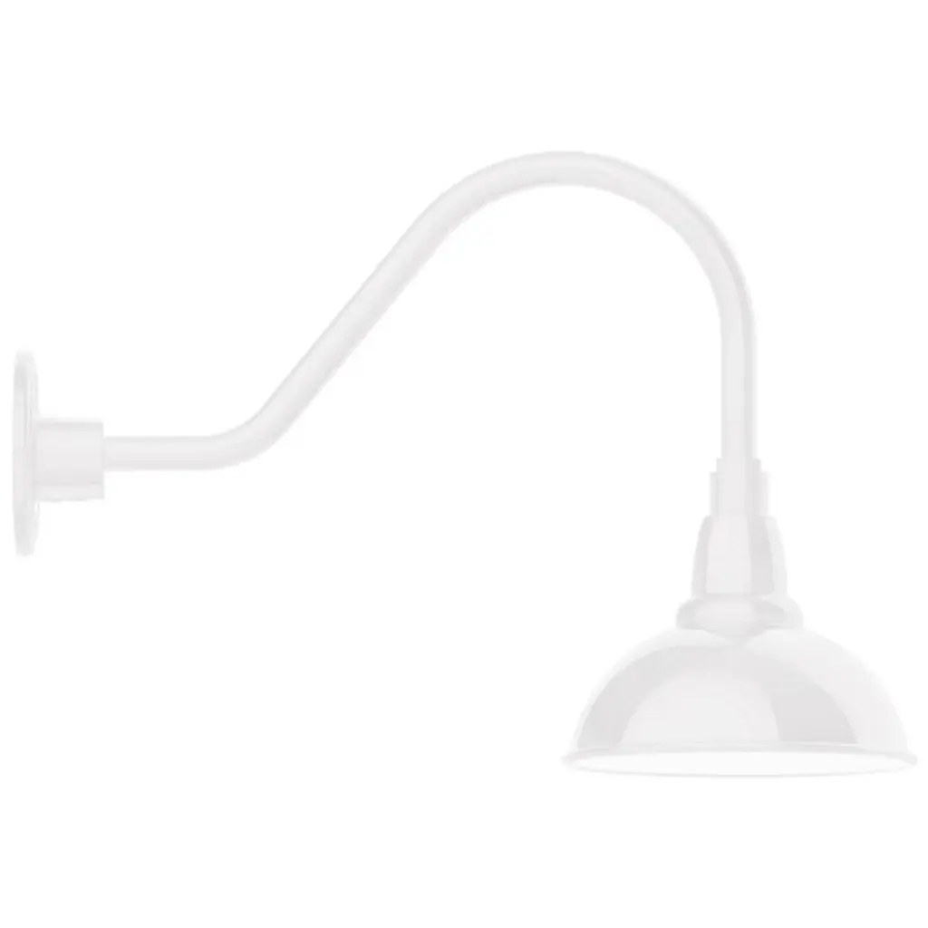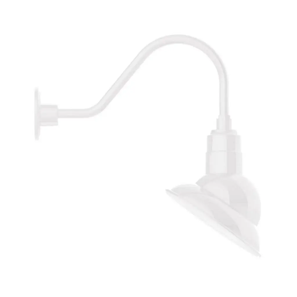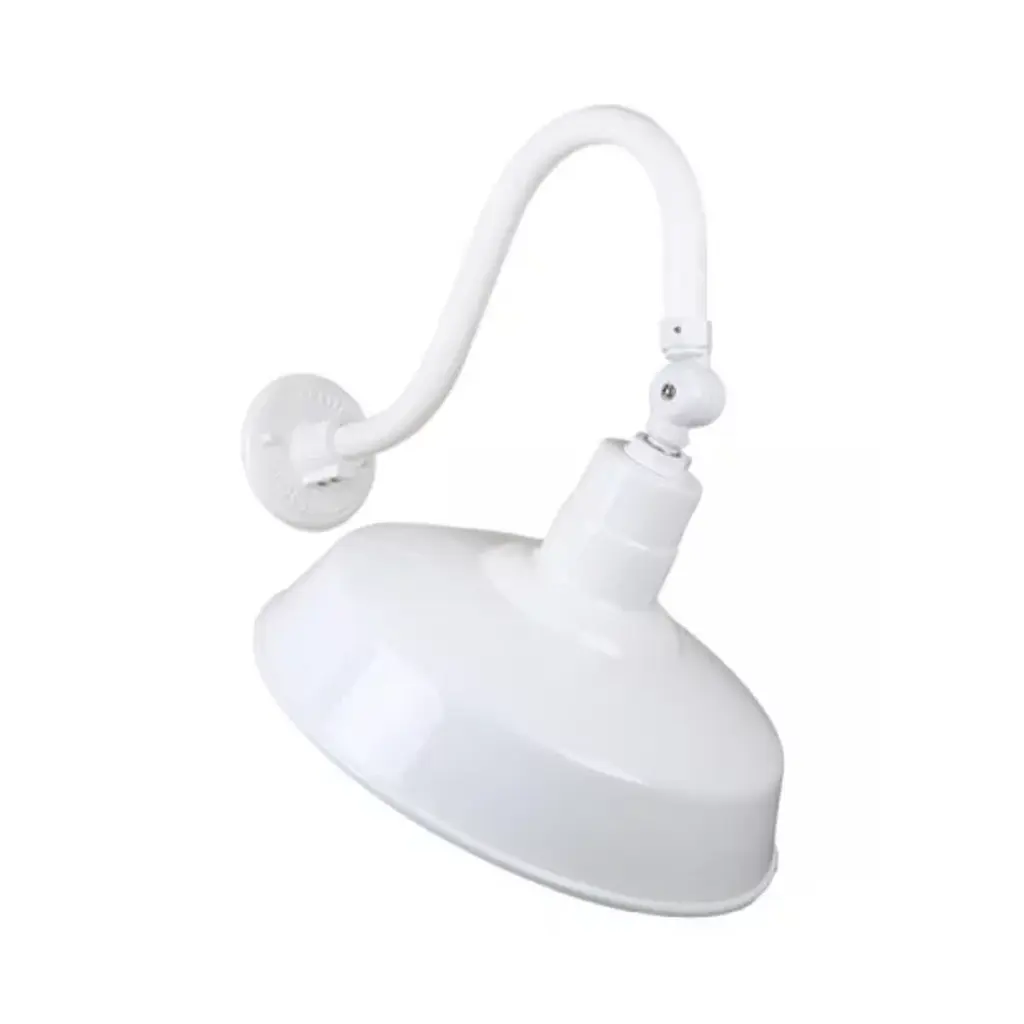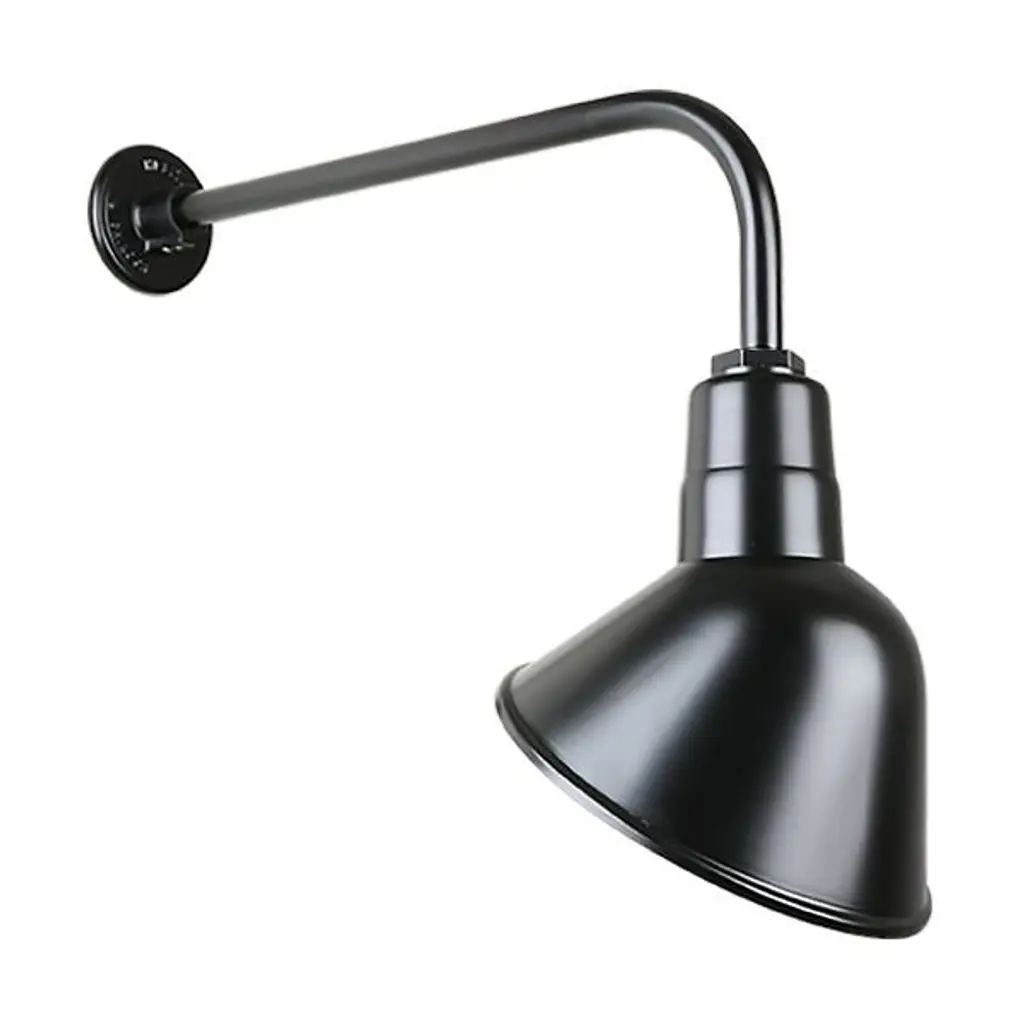 Illuminate architecture and put a spotlight on exterior features that matter most with the Angle 13 Arm Oudoor Wall Sconce by Hi Lite. Its clean industrial design is crafted from durable aluminum and begins with a slender arm extending straight forward from the wall, curving gently to form a right angle. Its tapered shade contains a single incandescent lamp, guiding its light back onto the wall and downward for ample ambient illumination.