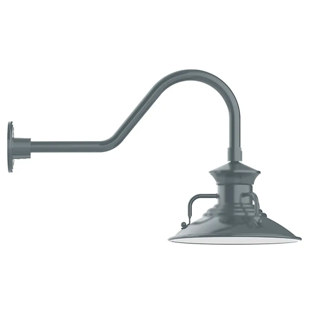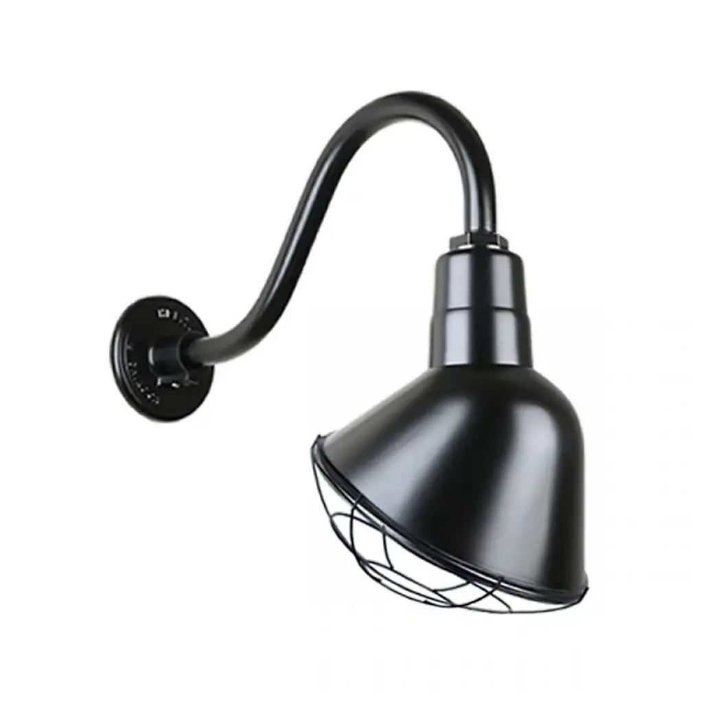 Shine a light on exteriors with the industrial look of the Angle A Arm Outdoor Wall Sconce by Hi Lite. Made from durable and dependable aluminum, this fixture includes a sleek, angled shade held at the end of an elegantly curved gooseneck arm. A single incandescent bulb rests within the shade’s white interior, emitting ample light directed inward and downward to provide a practical, glare-free glow while highlighting exteriors with ease.
