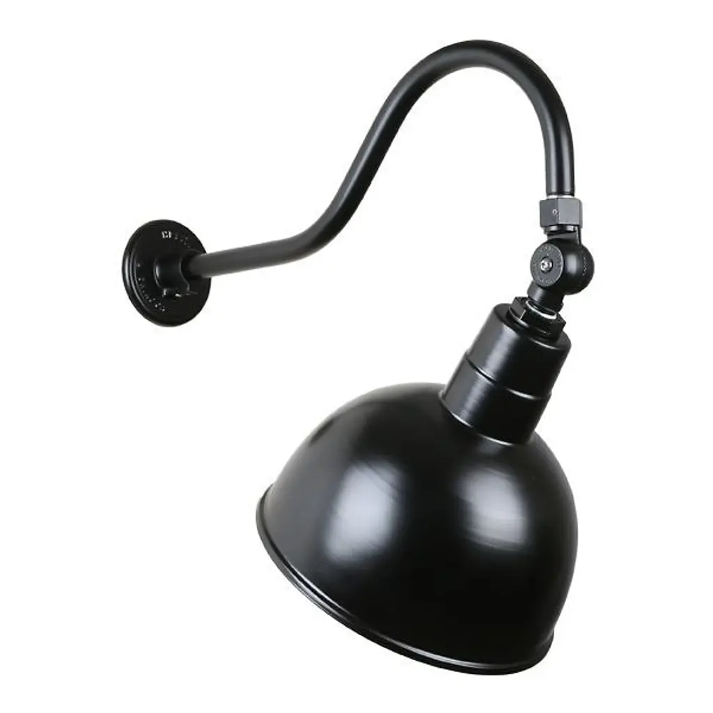 Shine a light on exteriors with the industrial look of the Angle A Arm Outdoor Wall Sconce by Hi Lite. Made from durable and dependable aluminum, this fixture includes a sleek, angled shade held at the end of an elegantly curved gooseneck arm. A single incandescent bulb rests within the shade’s white interior, emitting ample light directed inward and downward to provide a practical, glare-free glow while highlighting exteriors with ease.