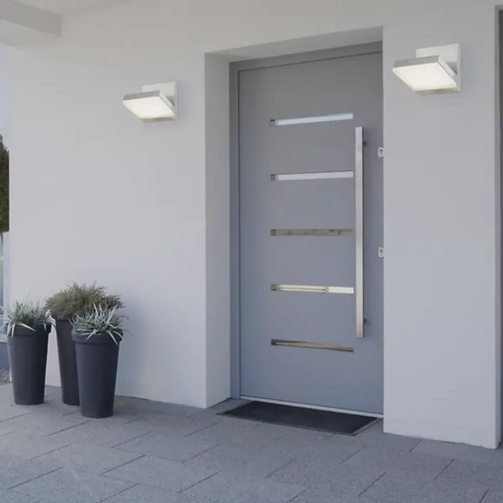 Tilted about 45 degrees from the wall, George Kovacs Angle Outdoor LED Wall Sconce will bring dimension to exterior spaces with a square metal structure and low-profile light source. The integration of a thin LED module keeps the structure quite minimal, needing only a layer of glass to conceal the light source. Although the angle brings the light in direct view, the Etched Glass diminishes uncomfortable glare as it evenly diffuses the LED light inside.