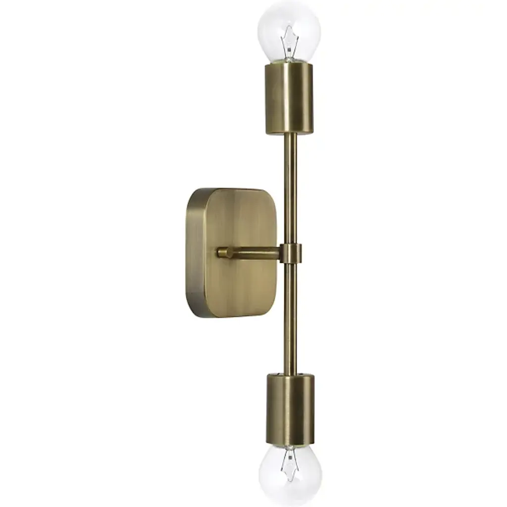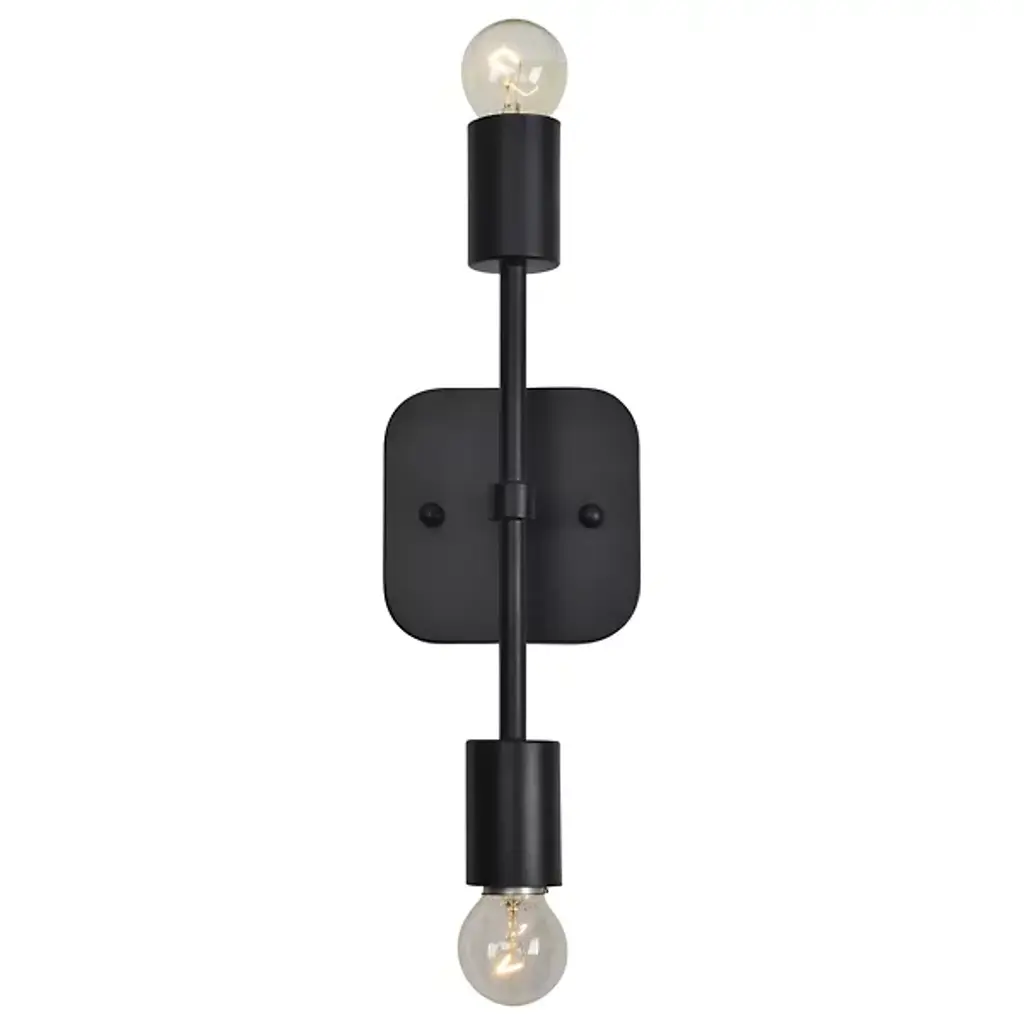 Give interiors a glorious glow with the inspired industrial character of the Anka Wall Sconce from Renwil. A curve-cornered square wall plate made from iron supports the lamping, extending a slim rod across its surface, each end extending a cylindrical socket that holds open lamping. The spindly rod contrasts well with the solidity of the metal, transmitting twin glowing elements outward as direct light accentuated by reflected wall wash.