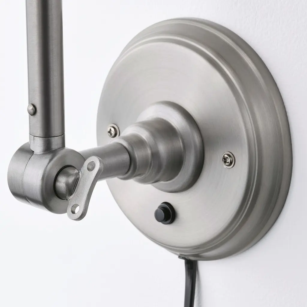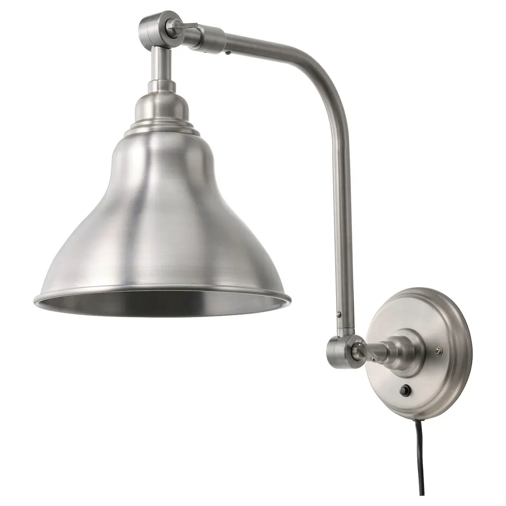 ANKARSPEL Wall lamp - pewter effect. You can easily direct the light where you want it because the lamp arm and head are adjustable. Provides a directed light that is great for reading. Light bulb sold separately. IKEA recommends LED bulb E26 globe opal white.