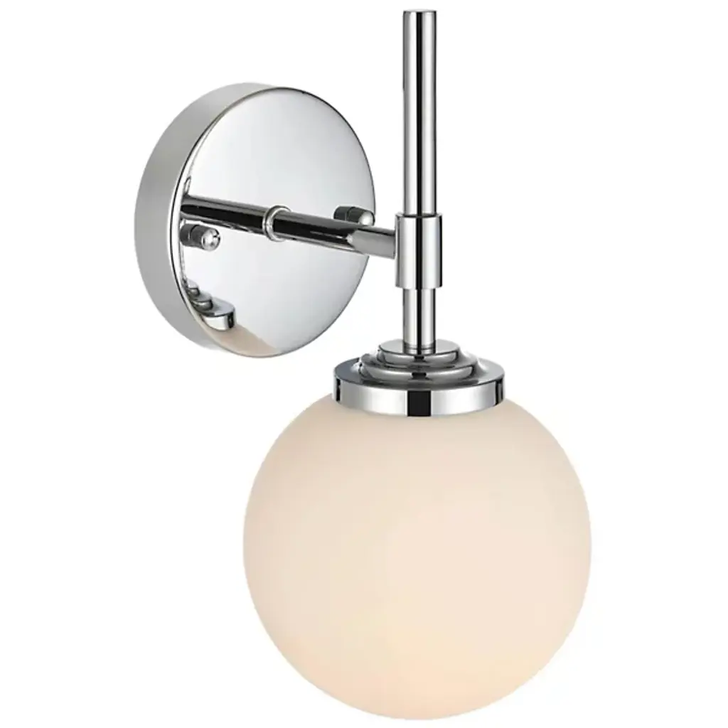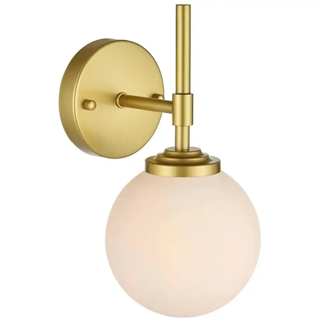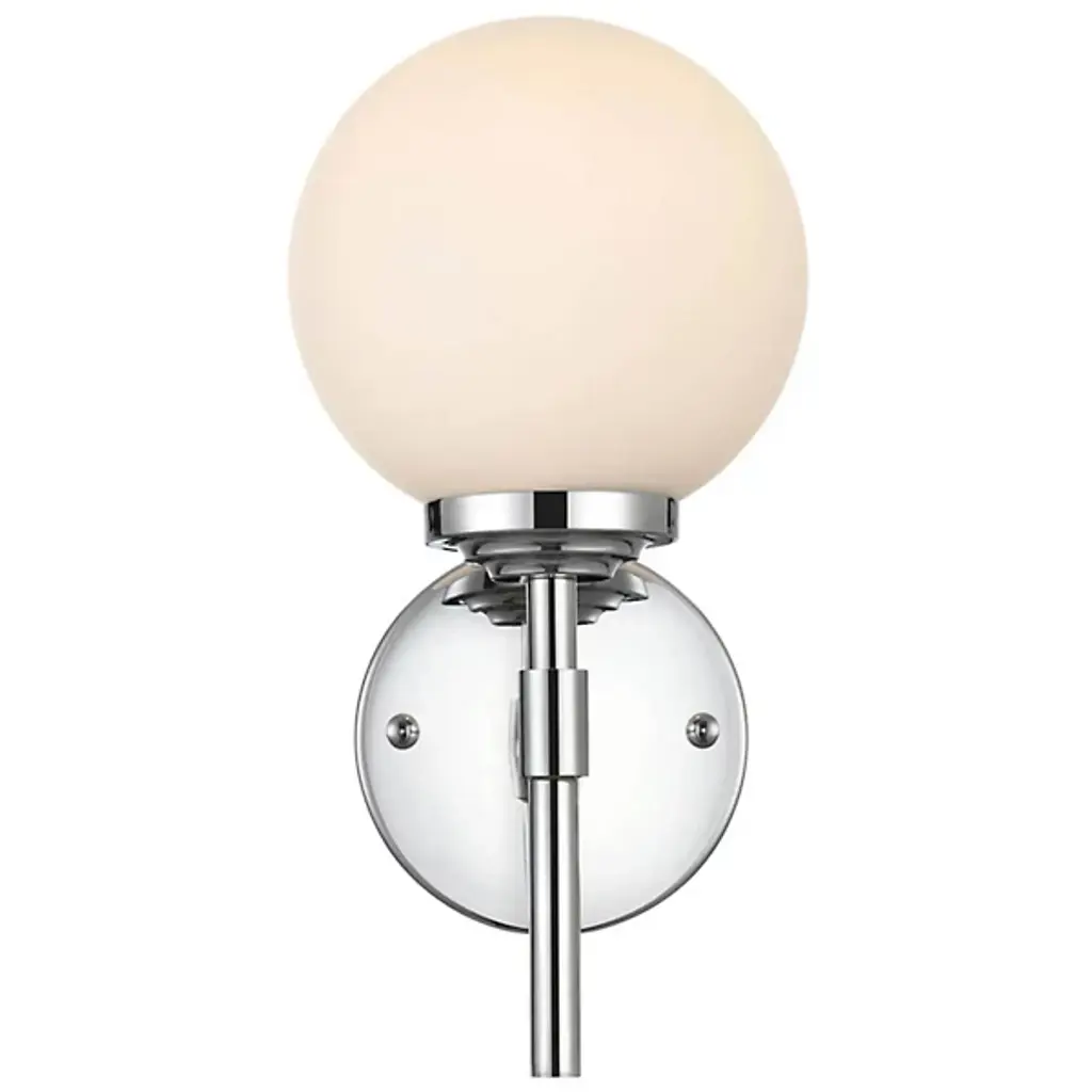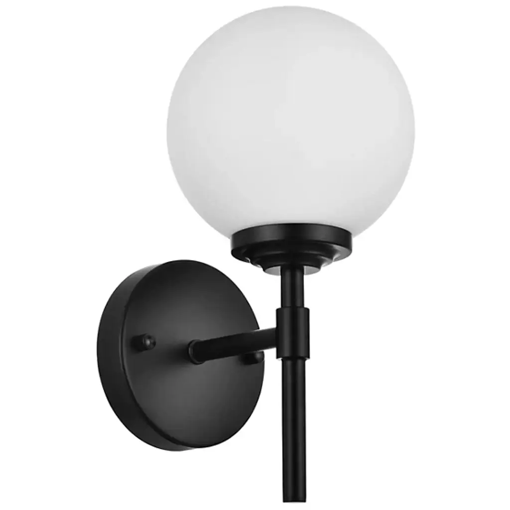 The Ansley Bath Sconce from Elegant Lighting offers a fresh take on classic globe lighting. A milky orb floats above a slender iron stem, evoking the serene glow of a miniature moon. The fixture's clean lines and uncluttered design speak volumes without overwhelming your space. Its dimmable feature allows you to fine-tune the atmosphere, from bright and invigorating for morning routines to soft and soothing for evening relaxation.