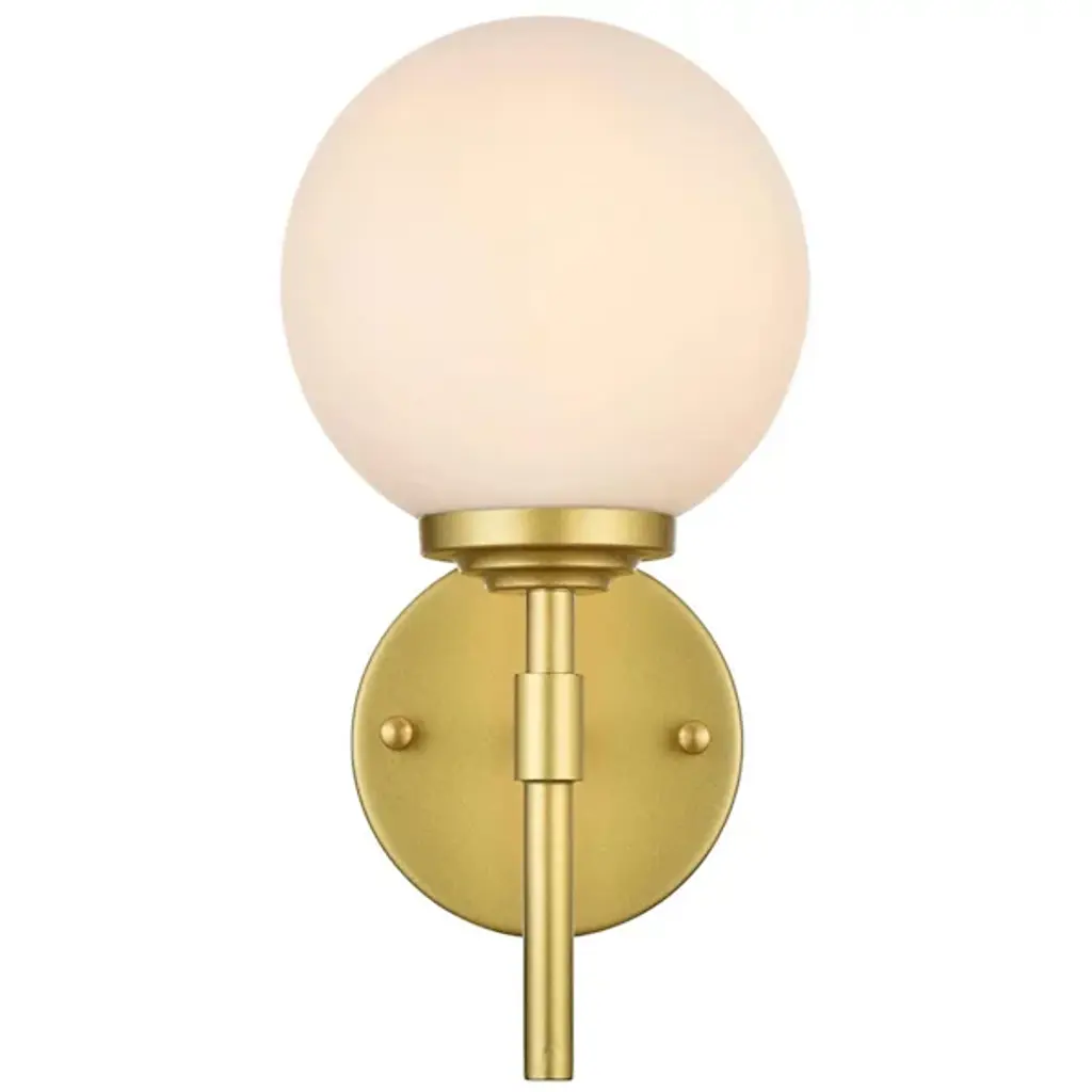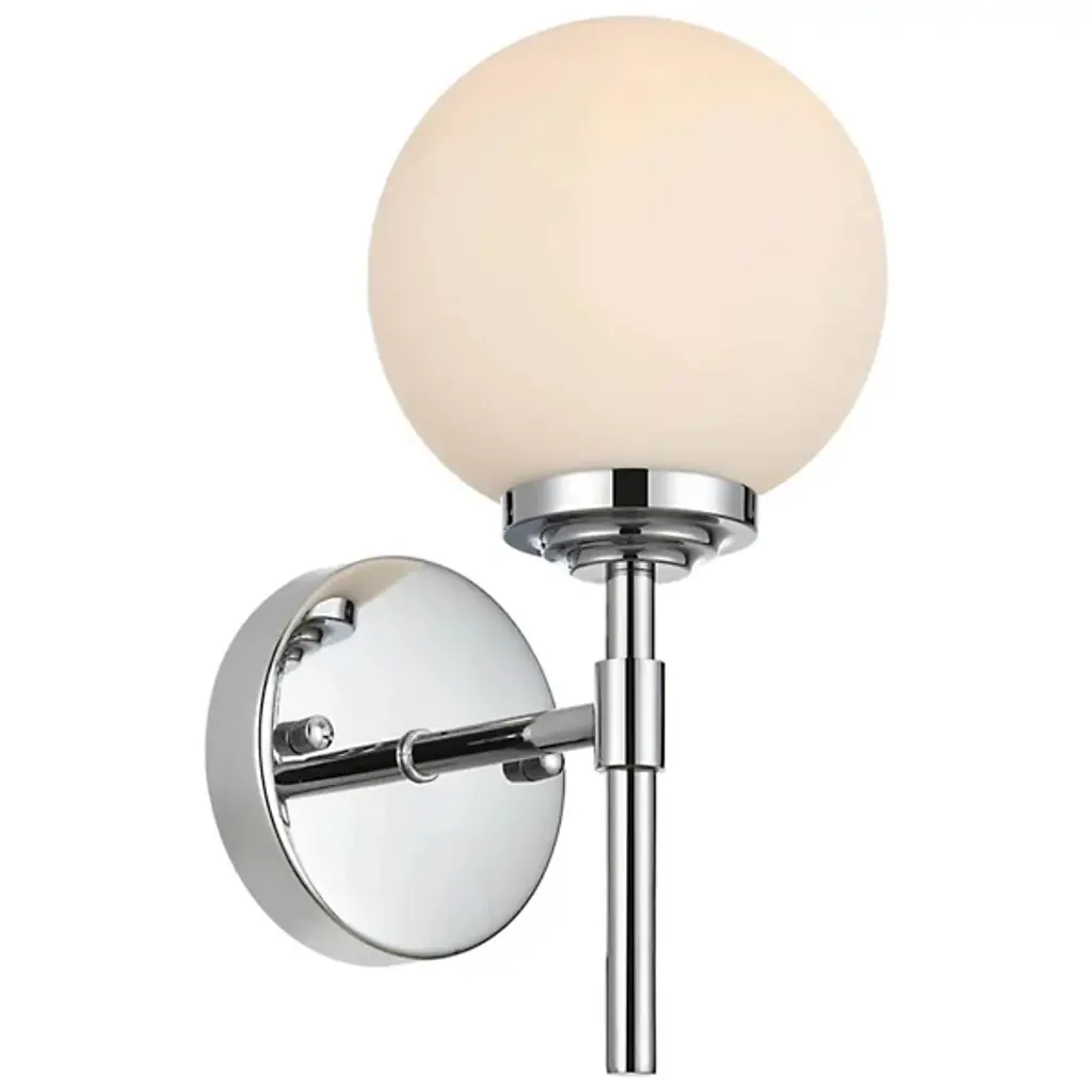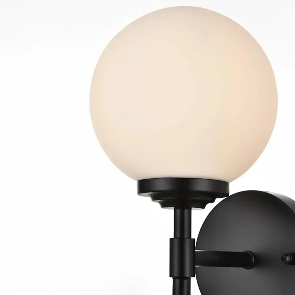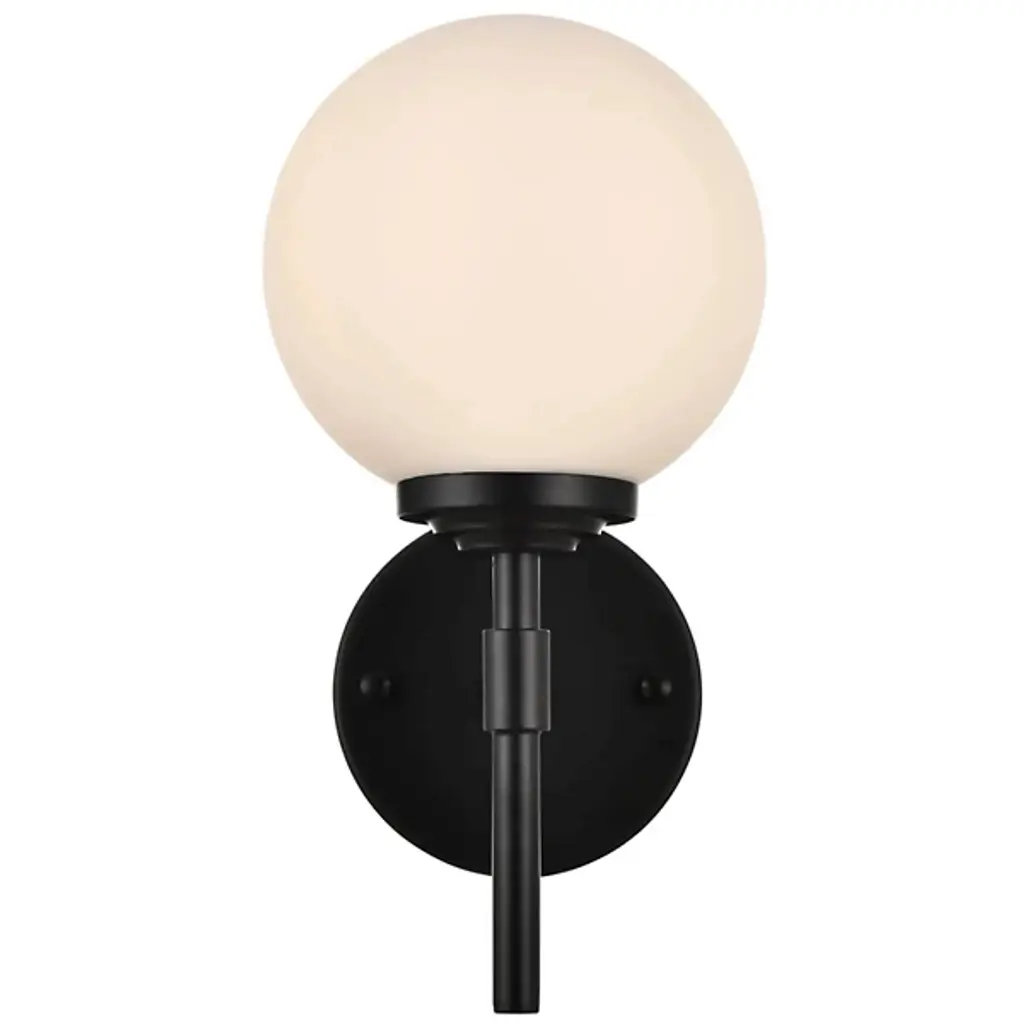 The Ansley Bath Sconce from Elegant Lighting offers a fresh take on classic globe lighting. A milky orb floats above a slender iron stem, evoking the serene glow of a miniature moon. The fixture's clean lines and uncluttered design speak volumes without overwhelming your space. Its dimmable feature allows you to fine-tune the atmosphere, from bright and invigorating for morning routines to soft and soothing for evening relaxation.