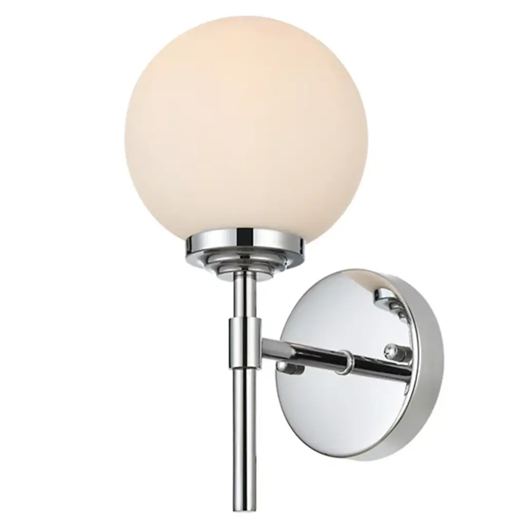 The Anslo Bath Wall Sconce from Huxe epitomizes a streamlined, minimalist design, effortlessly complementing any space in your home. Featuring frosted glass shades, it's versatile and perfect for bathrooms, entryways, or hallways. Compatible with dimmers, it offers customizable lighting for any time of day. Safe for damp locations, this hardwired fixture is crafted from iron with a modern finish, complete with a round backplate and a matching arm for two 40W bulbs (sold separately). It can be installed as an uplight or downlight, ensuring versatility in style and function.