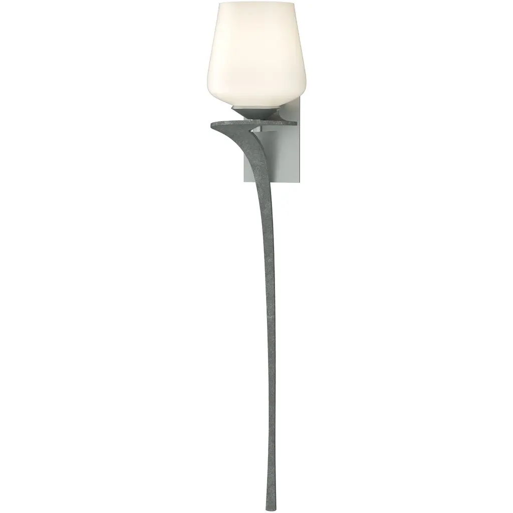 If we offered a bright orange finish, the flowing steel form of the Antasia Wall Sconce could pass as the molten metal it nearly was during the hand-forging process. There's a beautiful fluidity of form here.