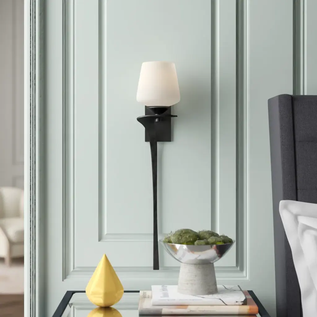 If we offered a finish, the flowing steel form of the Antasia wall sconce could pass as the molten metal it nearly was during the hand-forging process. There's a beautiful fluidity of form here.