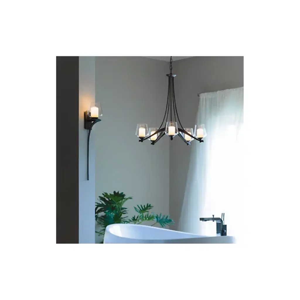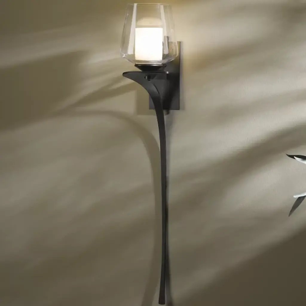 Ask a seasoned metal worker to create a piece based on your love of flowers, and they’ll present you with something like the Antasia Wall Sconce No. 204712 from Hubbardton Forge. It finds a nice balance between its industrial constriction and overall pretty design. Hand-forged iron zags downwards to create a slim tapered stem for its lampshade. Its tulip shaped shade encompasses the bulb for a pleasing glow. It works well as an elegant transitional light along hallways or dotting a living room.