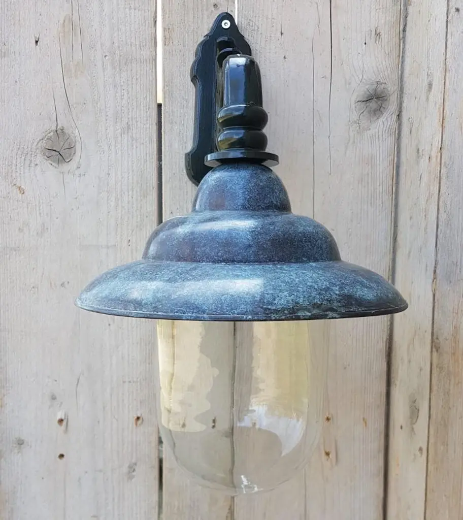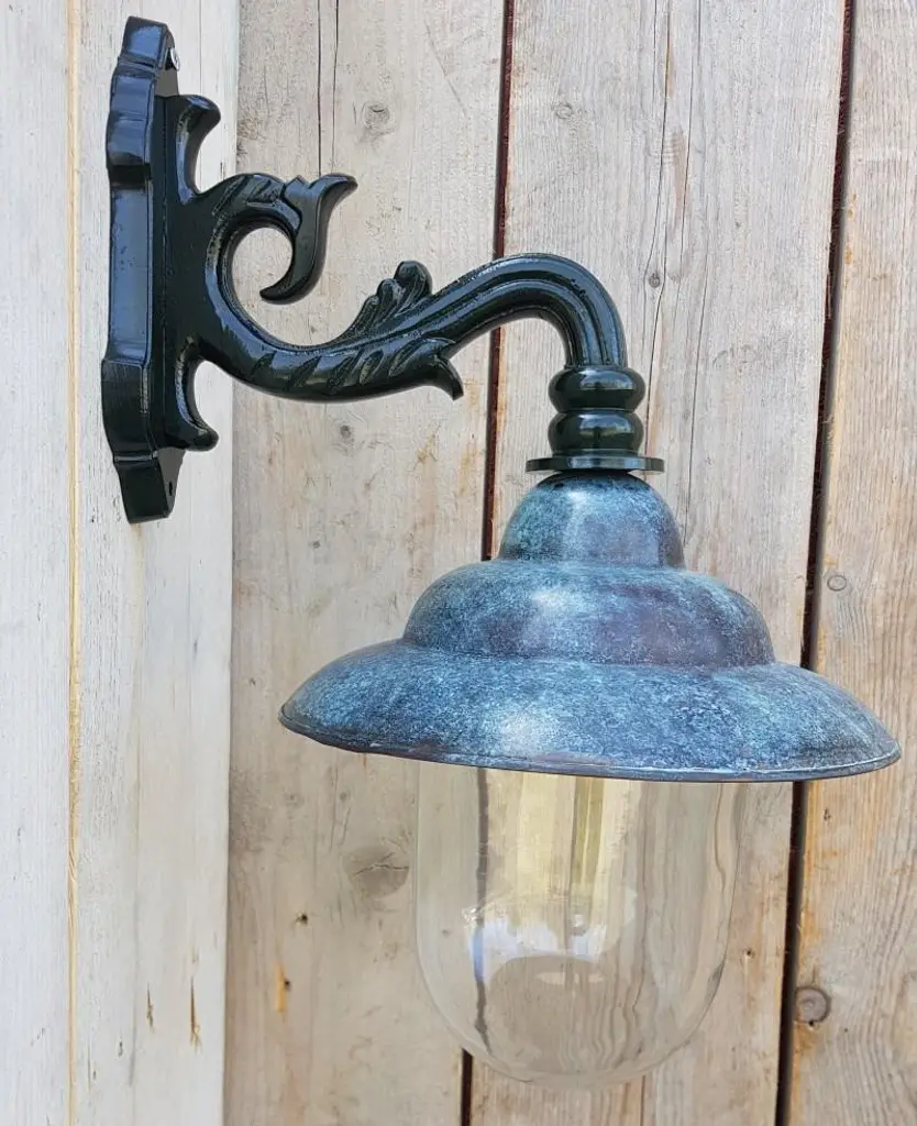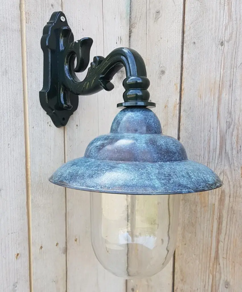 Antique Italian Green Copper Patina Outdoor Wall Lamp