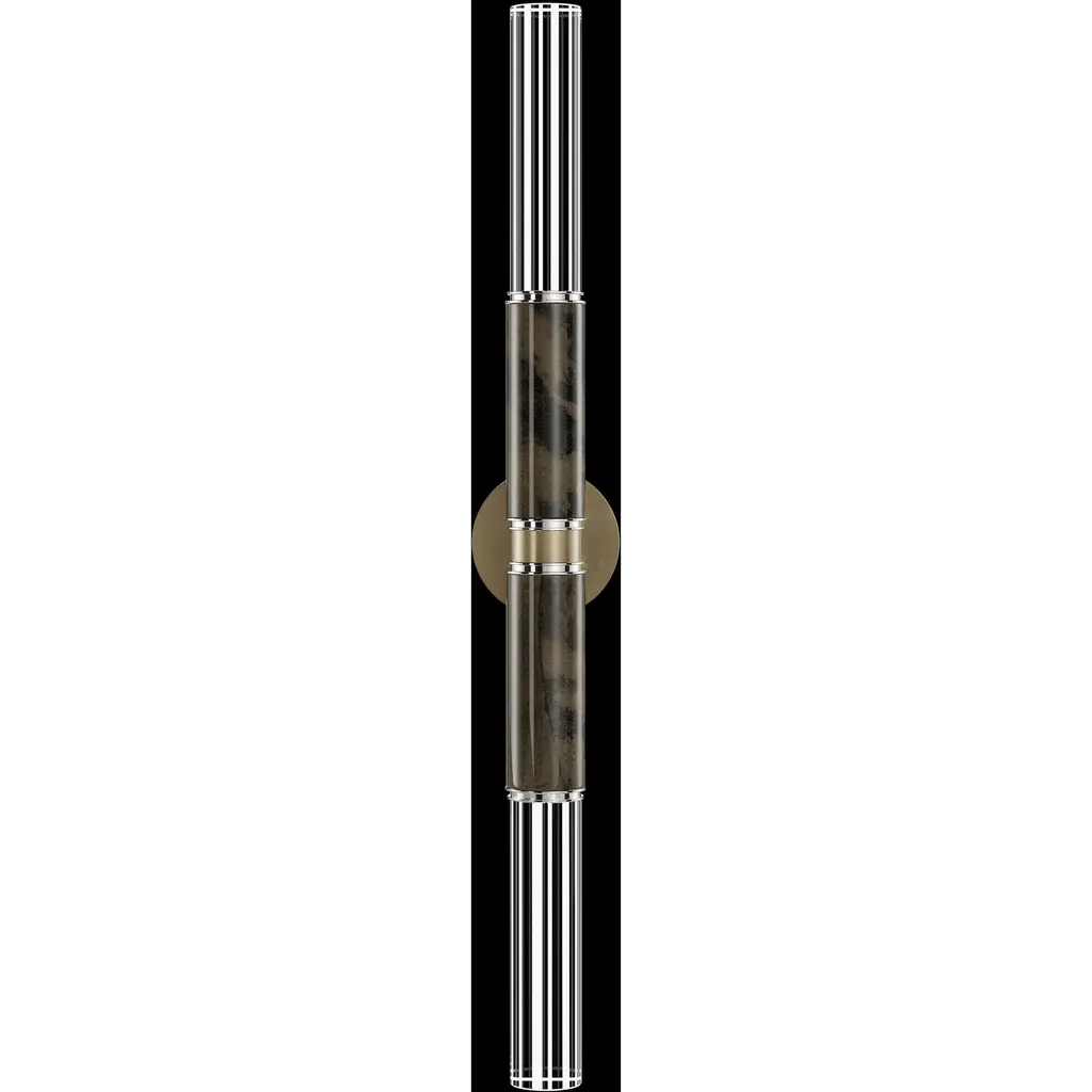 LED sconce features straight tubular lines and the inclusion of metals carefully handcrafted to transition from parchment to magnificent glass, culminating in a stunning beam of light. Available in a wide range of exquisite finishes, including our five st