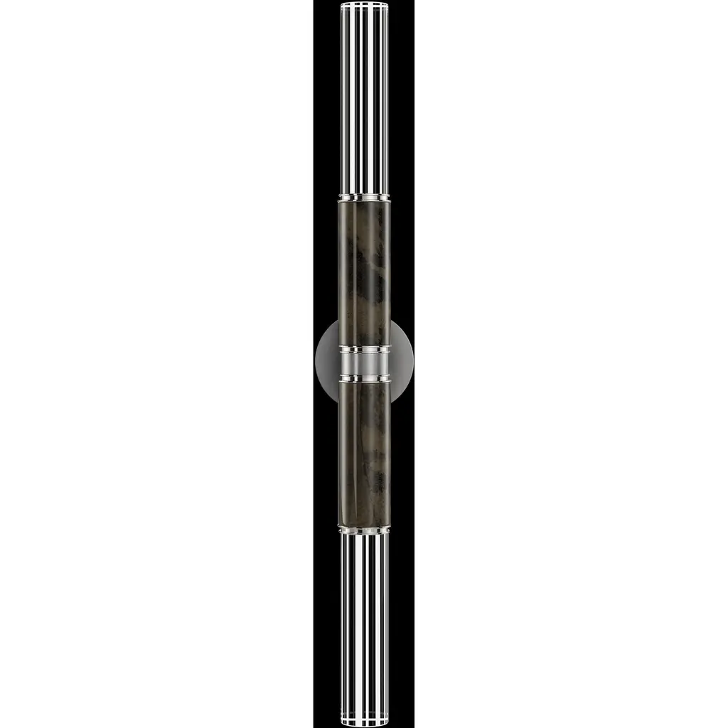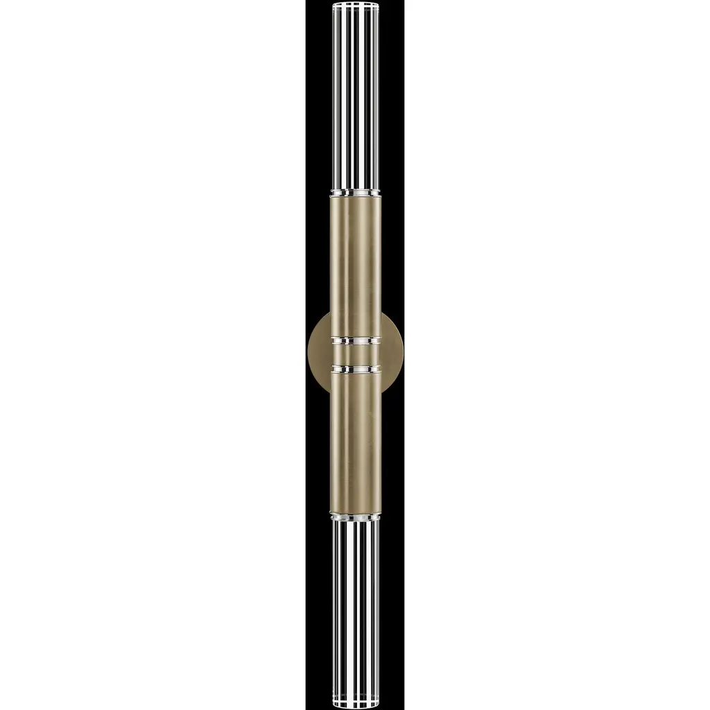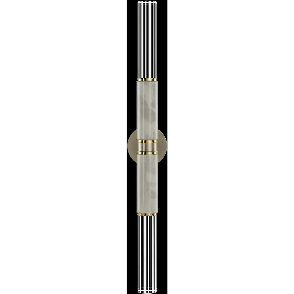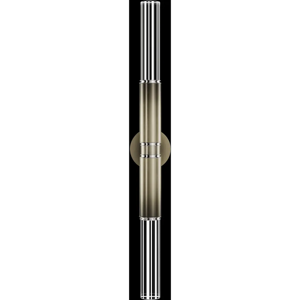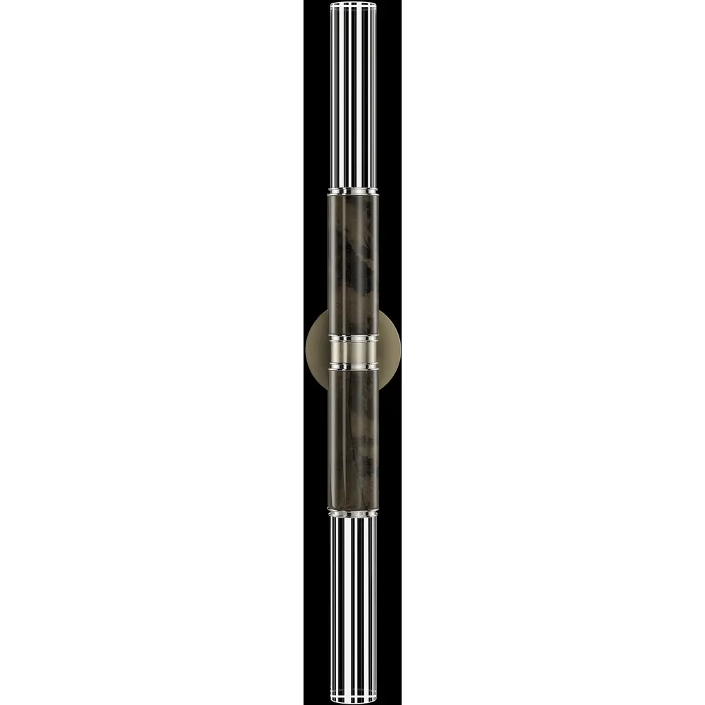 LED sconce features straight tubular lines and the inclusion of metals carefully handcrafted to transition from parchment to magnificent glass, culminating in a stunning beam of light. Available in a wide range of exquisite finishes, including our five st