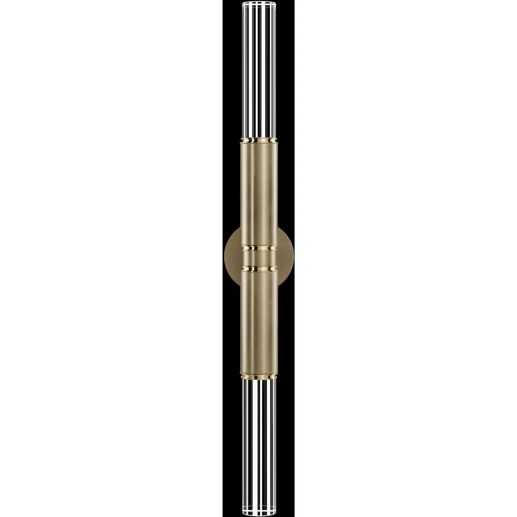 LED sconce features straight tubular lines and the inclusion of metals carefully handcrafted to transition from parchment to magnificent glass, culminating in a stunning beam of light. Available in a wide range of exquisite finishes, including our five st