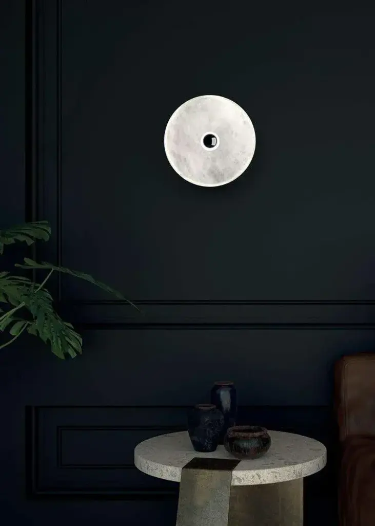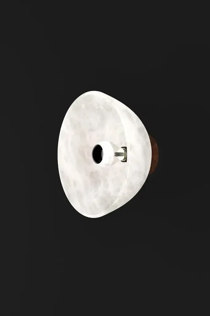 Apollo Ruggine Of Florence Metal Wall Lamp by Alabastro Italiano Dimensions: Ø 30 x W 17,5 cm. Materials: White alabaster and metal. Up to 250V (Europe/UK Standard).