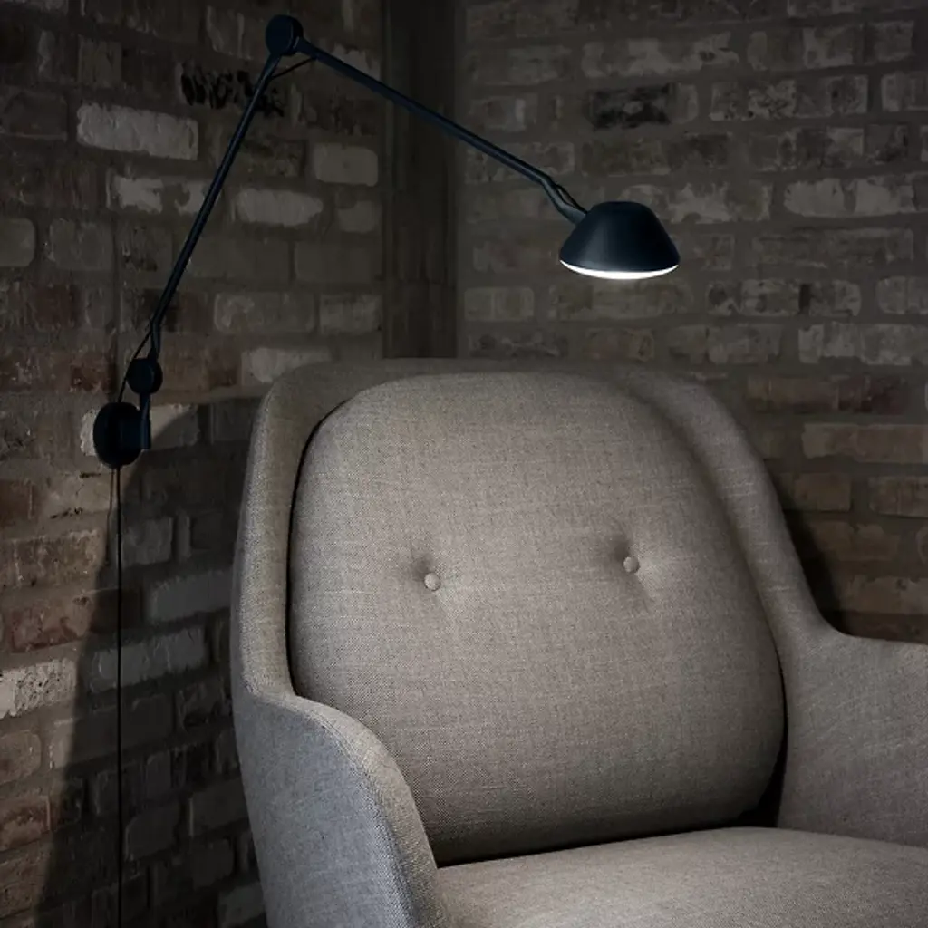 Bring new life and light to the smaller surfaces found throughout your home with the AQ01 LED Swing Arm Wall Sconce from Fritz Hansen. Mounting directly to the wall, this piece starts with a round base that leads to a pair of thin, delicate lines that form the body. A dome-shaped shade at the end sends down the perfect layer of light and can be turned off or dimmed with ease, creating the right illumination for the task at hand.