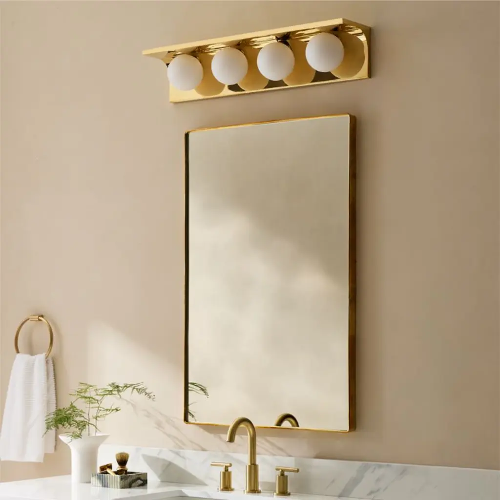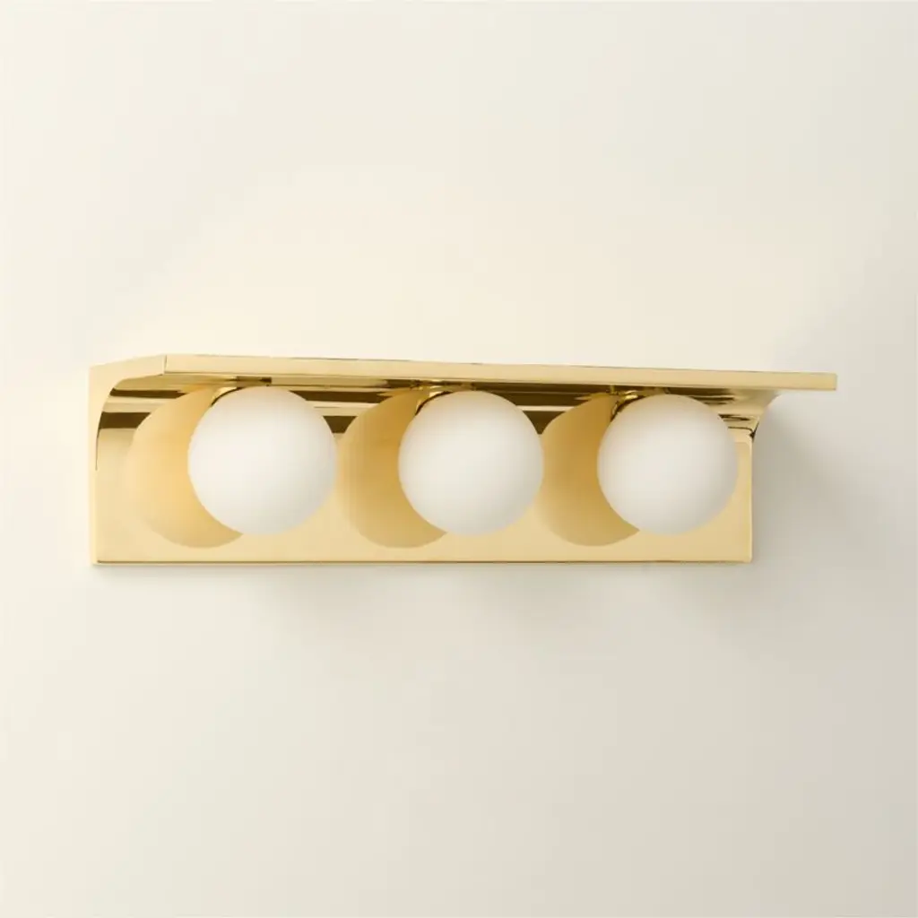 Polished brass sconce by award-winning Euga Design Studio in Milan echoes one of ancient Rome's greatest innovations: the Aqua Virgo aqueduct. Displaying a purity of geometric form and modern materiality, sconce is suspended from an arc of unlacquered brass, offering a living finish that will develop the patina of a vintage find. Three frosted glass globe shades illuminate a warm glow. CB2 exclusive.