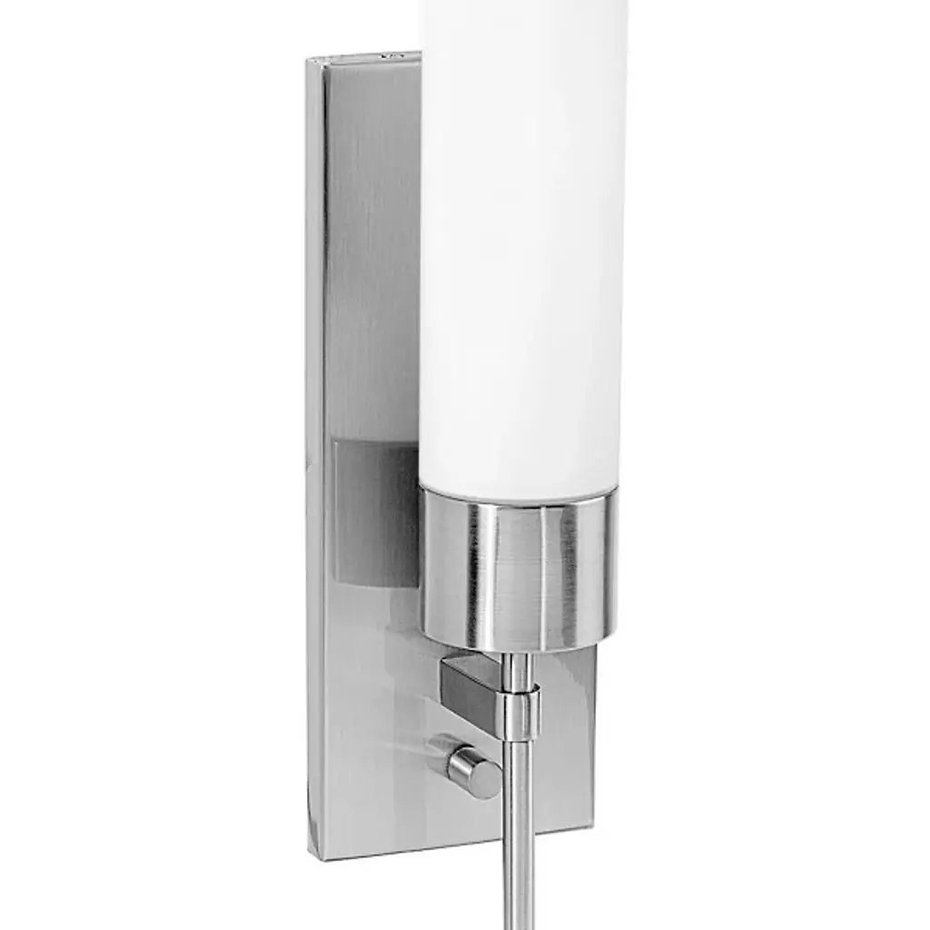 Add a fluid lighting element to transitional interiors with the Access Lighting Aqueous Wall Sconce with On/Off Switch. It features a cylindrical Opal glass shade, which diffuses a warm flood of light beautifully offset by the cool Brushed Steel finish of the base. For ease of use, the Aqueous includes a convenient on/off switch on the wall plate. ADA compliant.
