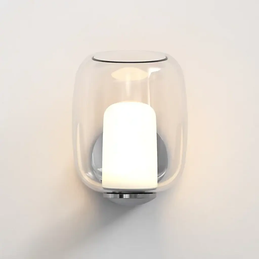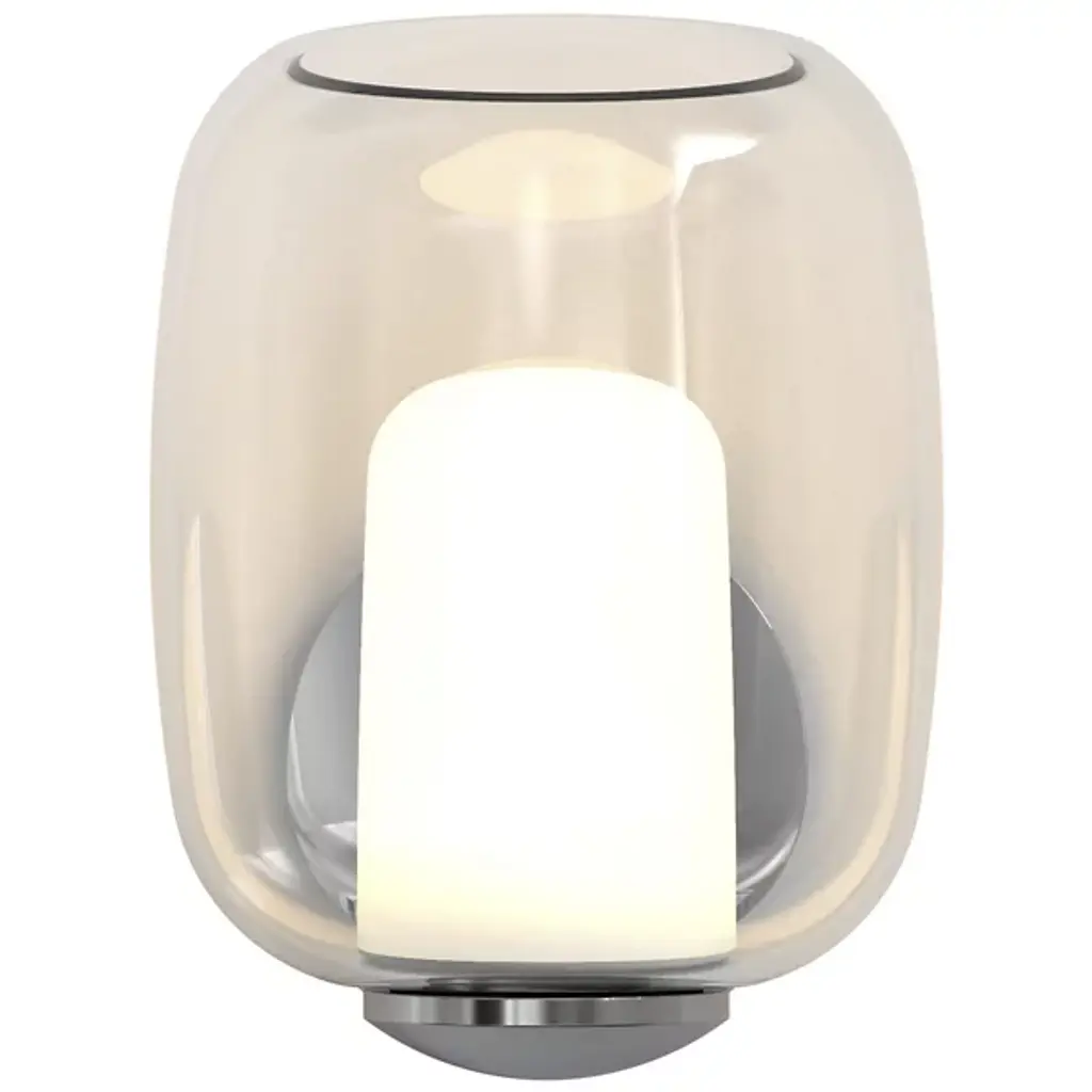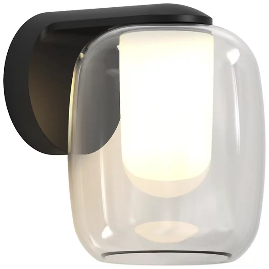A pop of charming personality in the tightest spaces. Whether tucked in between picture frames or nestled alongside an entryway, the Aquina Wall Sconce from Astro Lighting grabs one’s attention in its collection of beautiful round forms. These forms follow the visual language of modern or contemporary homes. In one fluid motion, the compact backplate transforms into a sleek arm to hold the lovely glass. This rounded clear glass shade catches delightful highlights like a bubble. The opaque diffuser inside hides the bulb’s glare from sight and creates a gradient of warm ambient hues.