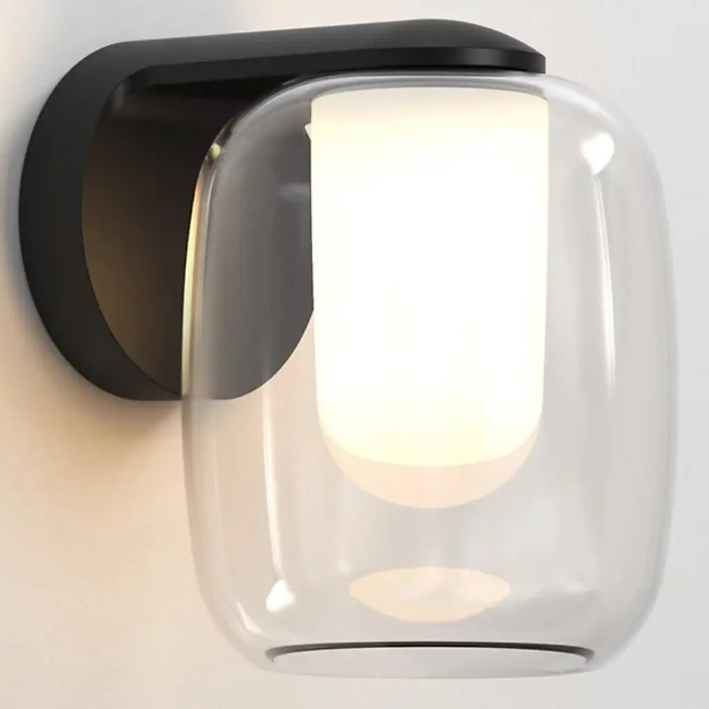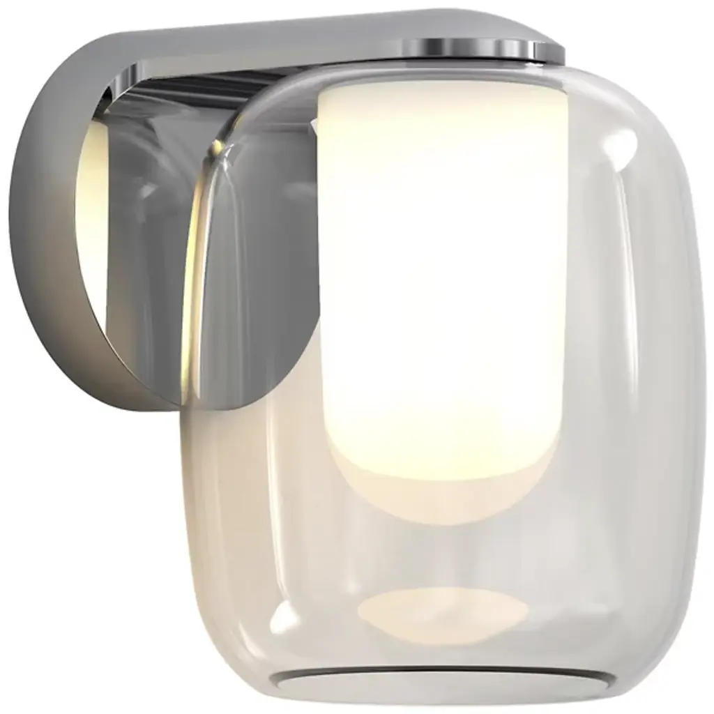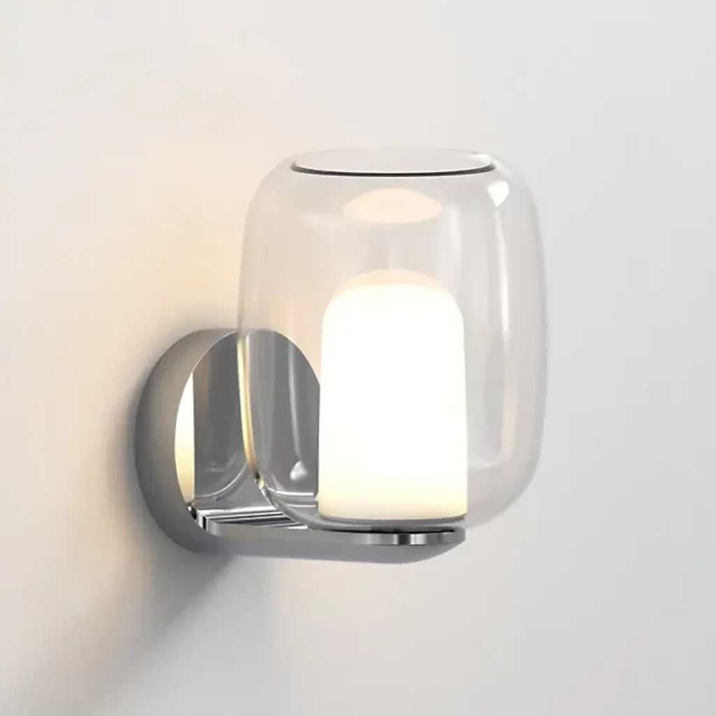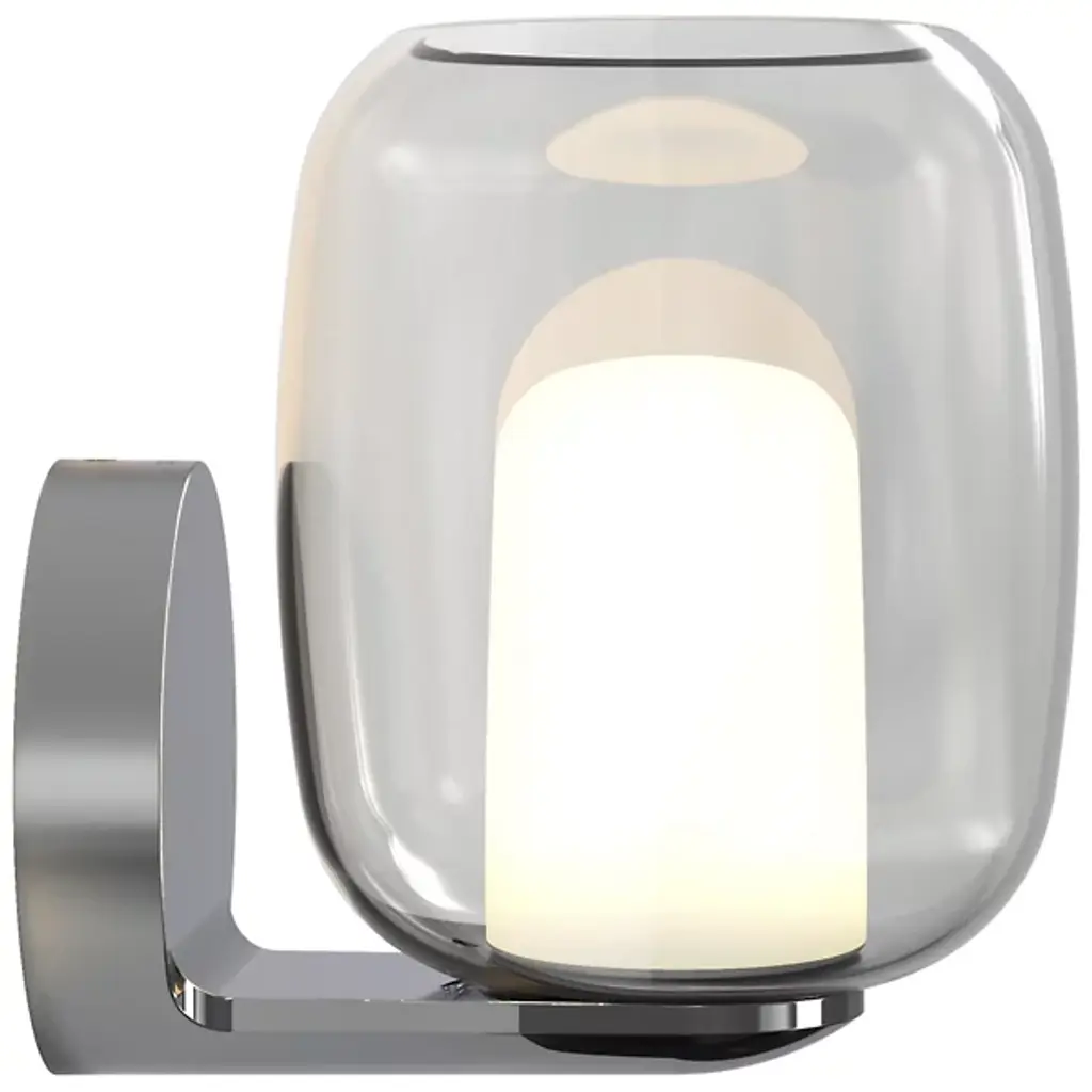 A pop of charming personality in the tightest spaces. Whether tucked in between picture frames or nestled alongside an entryway, the Aquina Wall Sconce from Astro Lighting grabs one’s attention in its collection of beautiful round forms. These forms follow the visual language of modern or contemporary homes. In one fluid motion, the compact backplate transforms into a sleek arm to hold the lovely glass. This rounded clear glass shade catches delightful highlights like a bubble. The opaque diffuser inside hides the bulb’s glare from sight and creates a gradient of warm ambient hues.