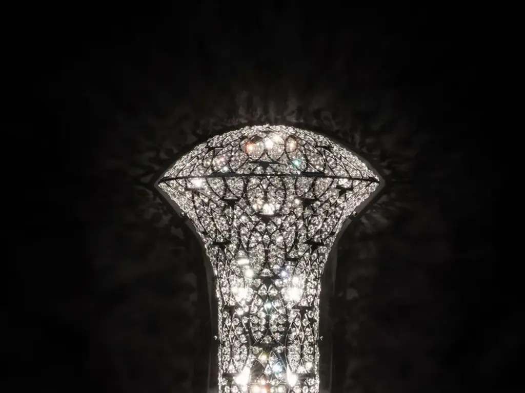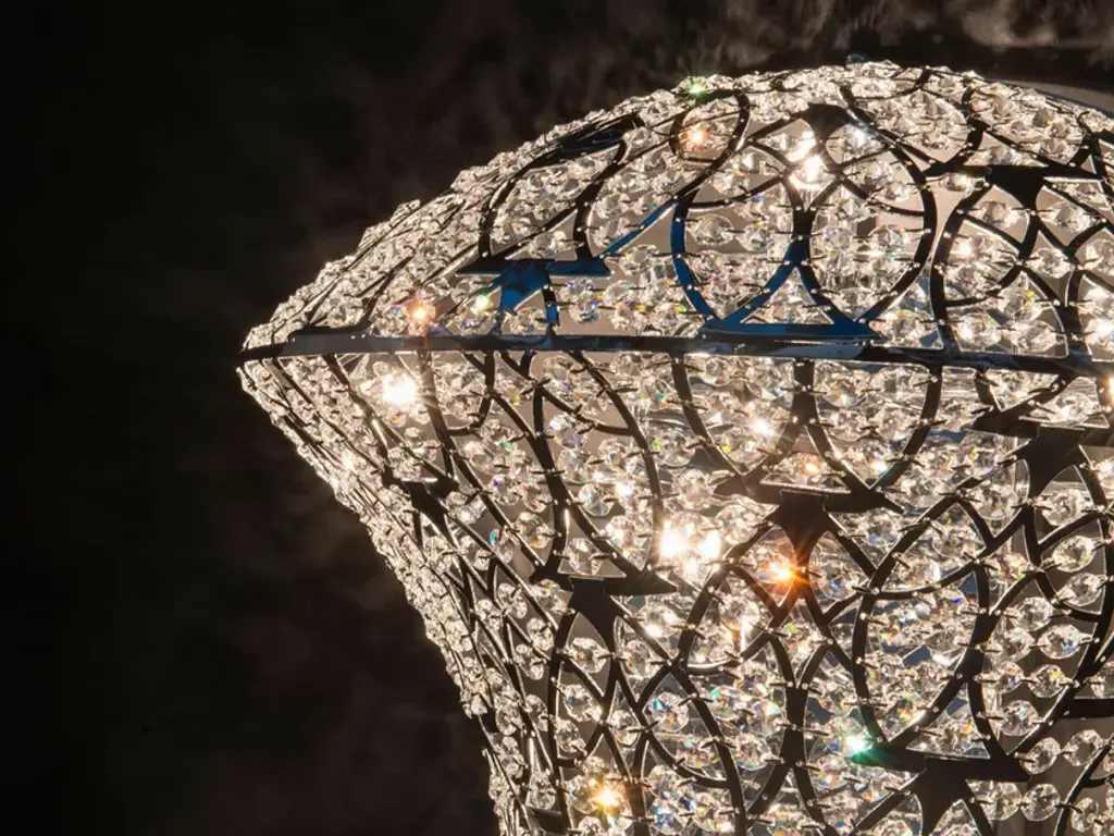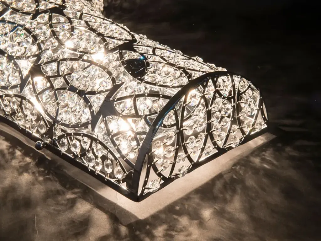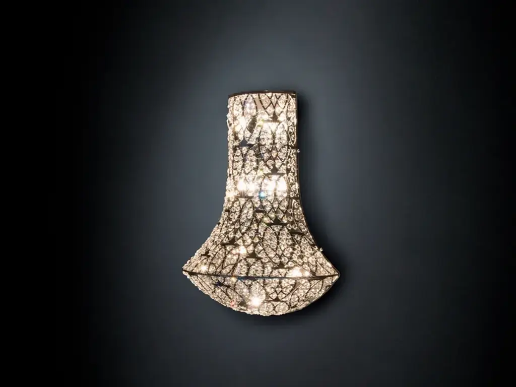 ARABESQUE EXCLAMATION SMALL is an elegant wall light with structure in stainless steel available with different finishes and crystals.