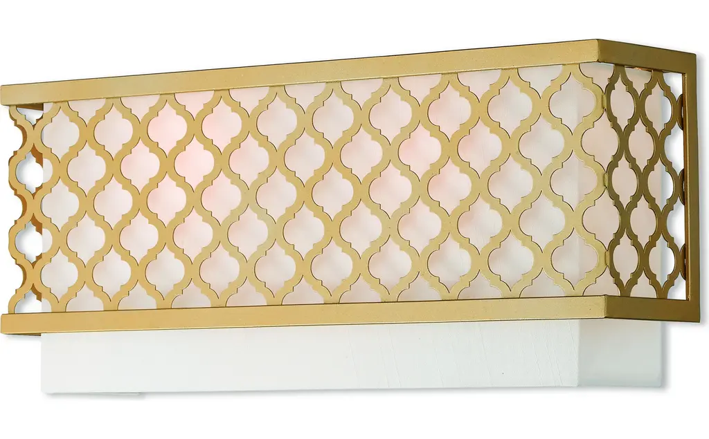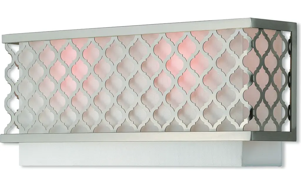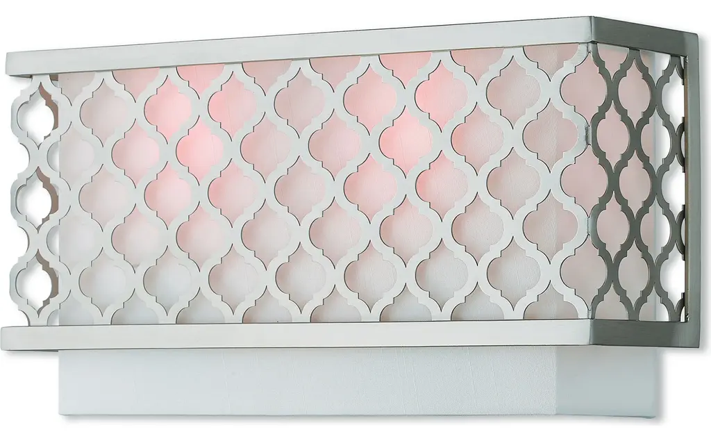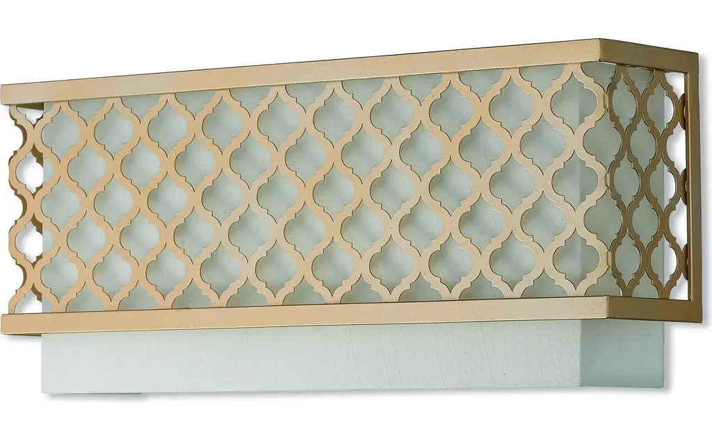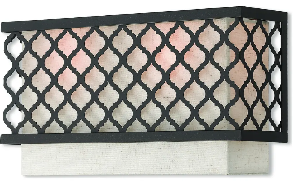 Our Arabesque one light wall sconce will add refined style and a hint of mystery to your decor. The off-white fabric hardback shade creates a warm illumination, while the light brings to life the intricate cutout pattern.Number of Bulbs: 2Wattage: 40Bulb Type: Medium BaseBulb Included: NoUL Listed: Yes