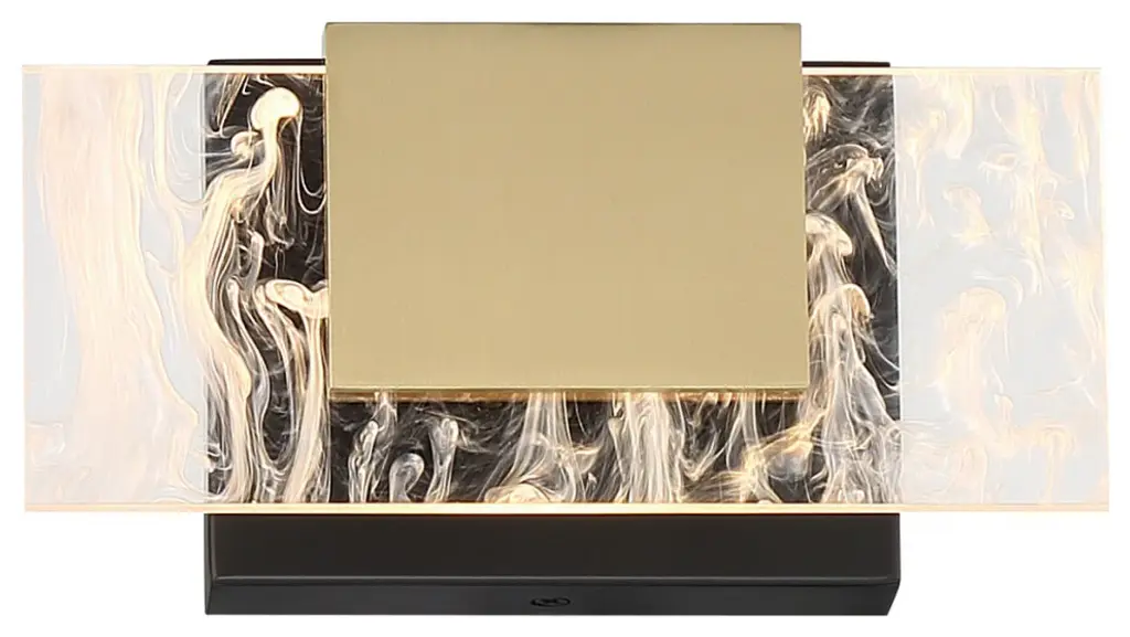 A large square thick convex glass panel that is clear with a freeform white swirl is held by a single, vertical handcrafted steel bar in the Arc 1-Light Bath Sconce. Available in Black, Oil Rubbed Bronze, Vintage Platinum, Soft Gold, Sterling and Modern Brass.