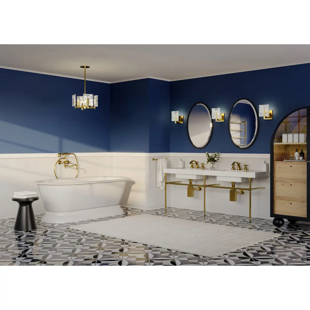 This Arc Bath Sconce features a smaller vertical rectangular glass with the Arc Collection's trademark abstract white swirls embedded in its thick, clear glass. Secured by a handcrafted steel arm, this Arc 1-Light Bath Sconce is available in Black, Oil Rubbed Bronze, Vintage Platinum, Soft Gold, Sterling and Modern Brass.
