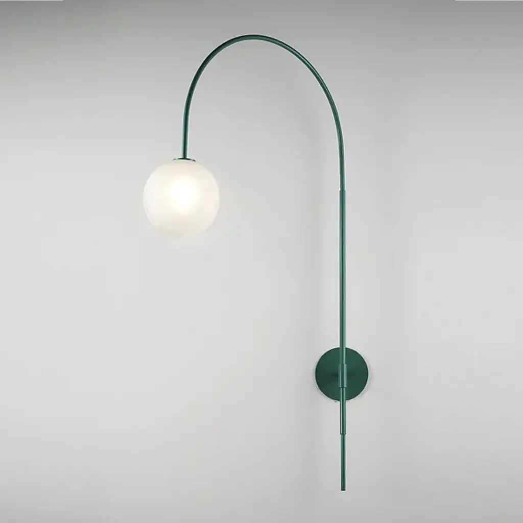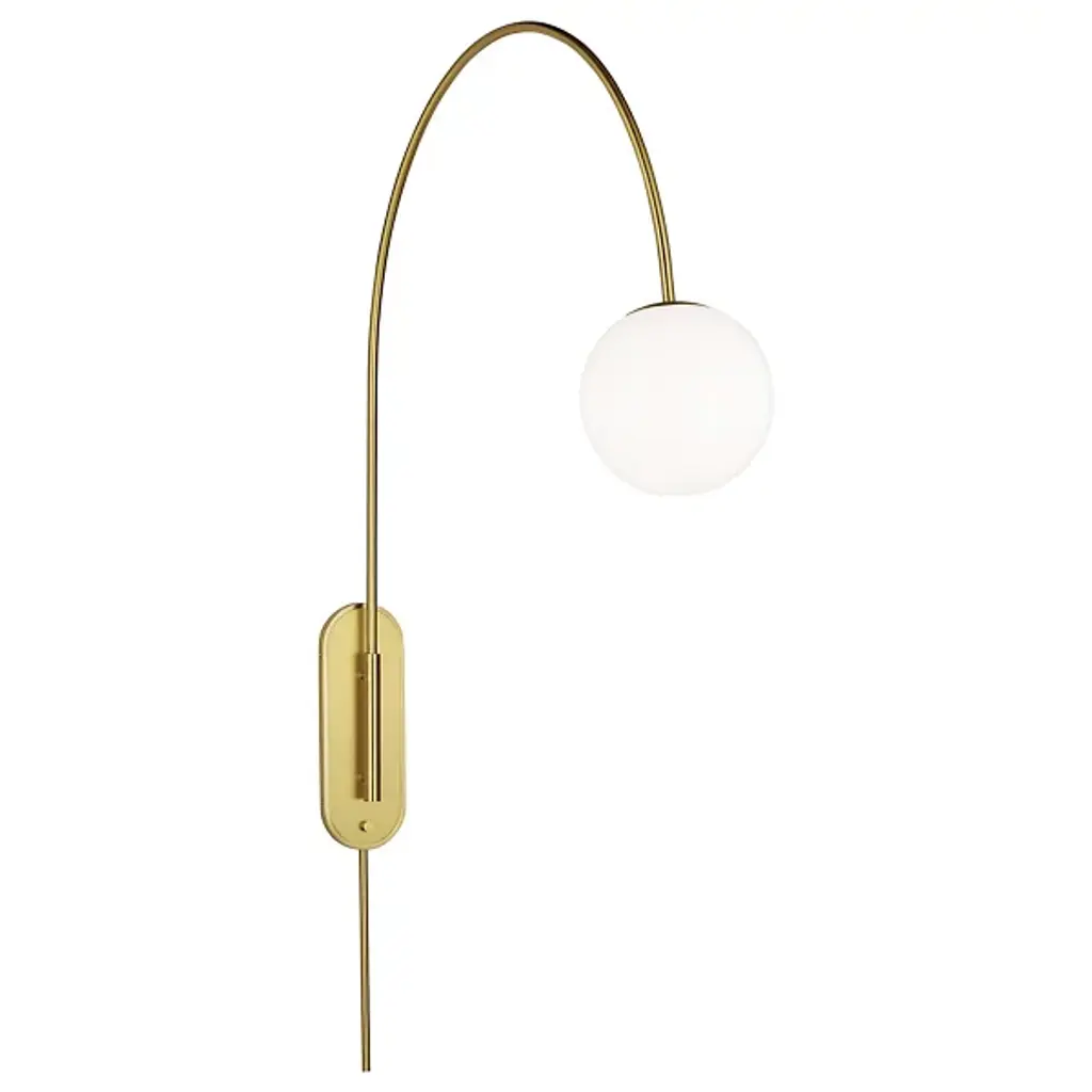 Illuminate your living space with the inventive Arc Wall Sconce by Blueprint Lighting. This wall sconce, designed by Kelly Aaron, embodies her tenet of creating modern works of art. Fine aluminum beautifully contours into an arching shape reminiscent of cane. The sconce’s body takes on an ultra-slender form that draws your gaze. A disc-shaped backplate at your wall keeps the light fixture firmly in place. A globe of opal glass contains a halogen bulb that radiates bright light throughout your halls and entryways. The Arc Wall Sconce is crafted in the Bauhaus tradition and is informed by Kelly Aaron’s art gallery expertise.