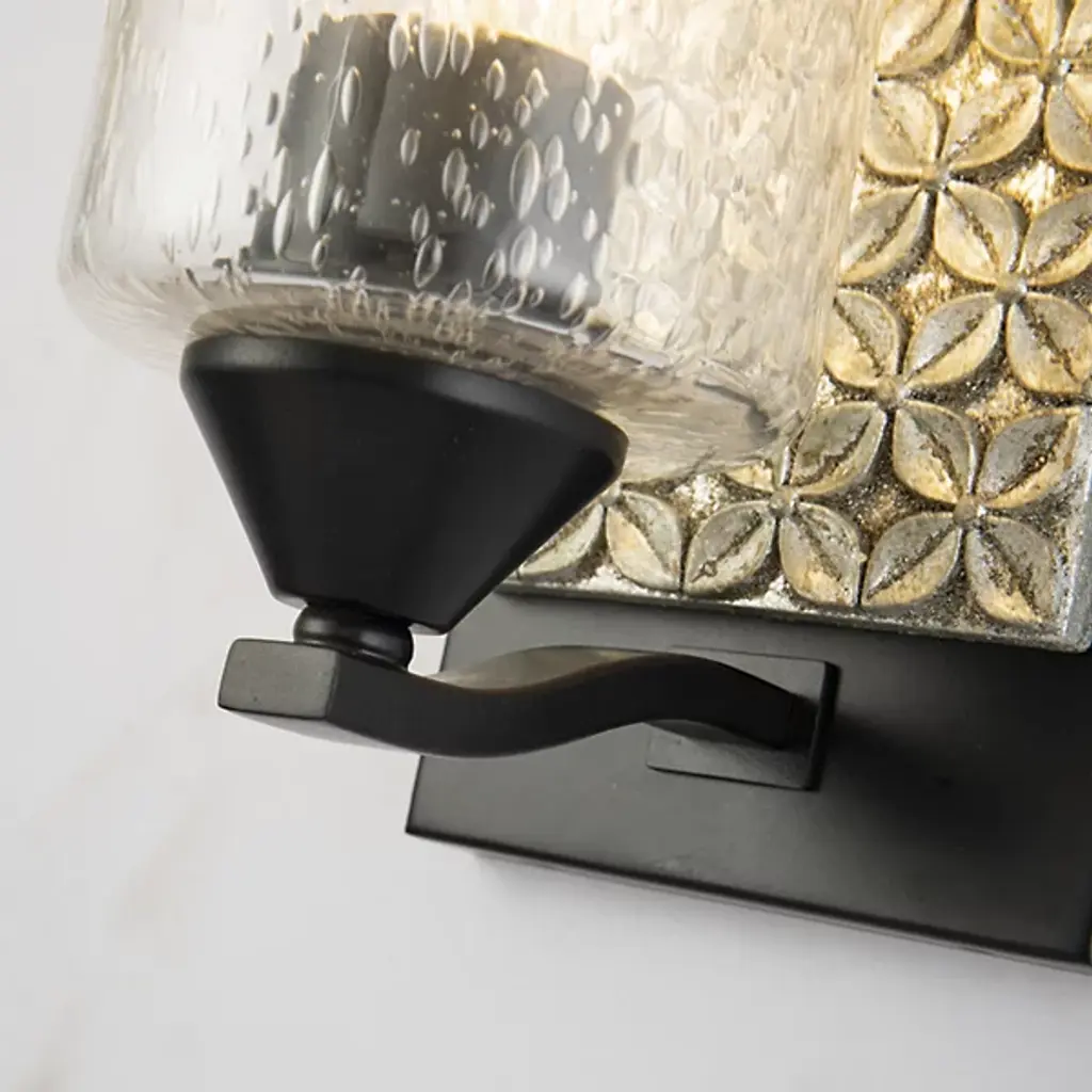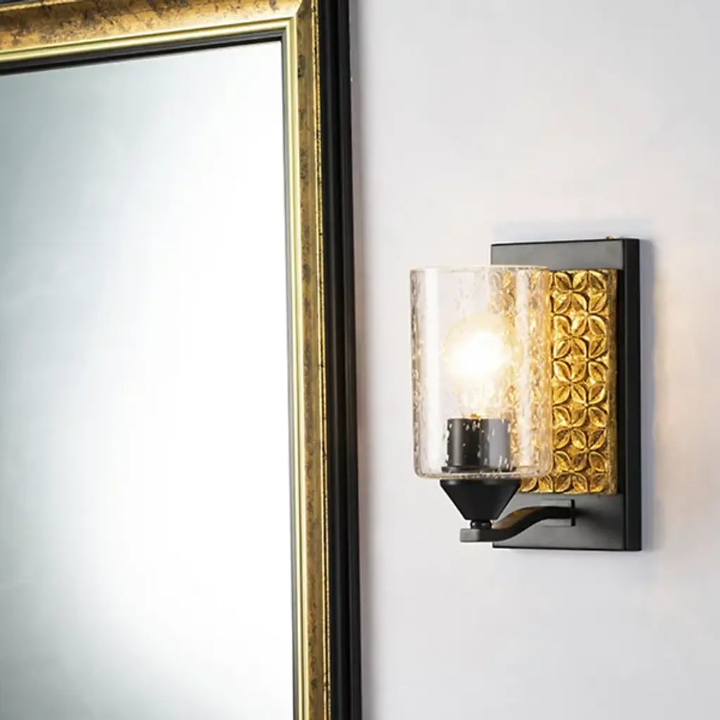 Made for brightening your hallway, bathroom, or living space, the Arcadia Wall Sconce by Lucas McKearn features a clean-cut rectangle backplate with textured shapes and a simple curved arm. Showing off its contemporary side, this wall sconce uses a cylinder-shaped clear seeded glass to bring attention to the mix of texture and detail that come together seamlessly.