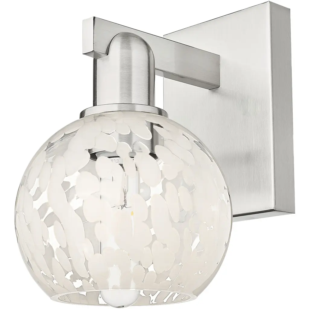 Arcadia White Mouchette Armed Sconce Wall Light In Brushed Satin Nickel